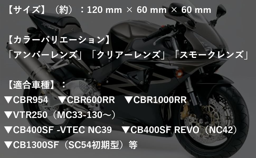 【適合車種】:▼CBR954 ▼CBR600RR ▼CBR1000RR ▼VTR250(MC33-130~) ▼CB400SF -VTEC NC39 ▼CB400SF REVO(NC42) ▼CB1300SF(SC54初期型)等
