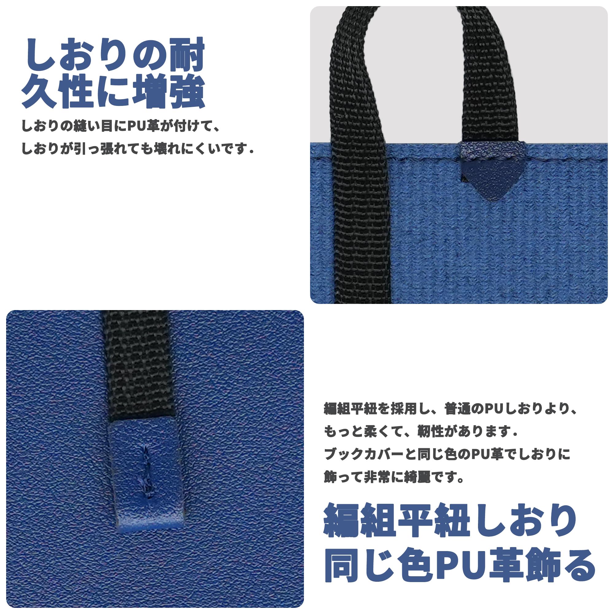 【しおり耐久性強化】編組平紐を採用しました、よく採用されPUレザー栞より、柔らか、高靭性など特徴があります.引っ張りに強くて潰れにくいです.