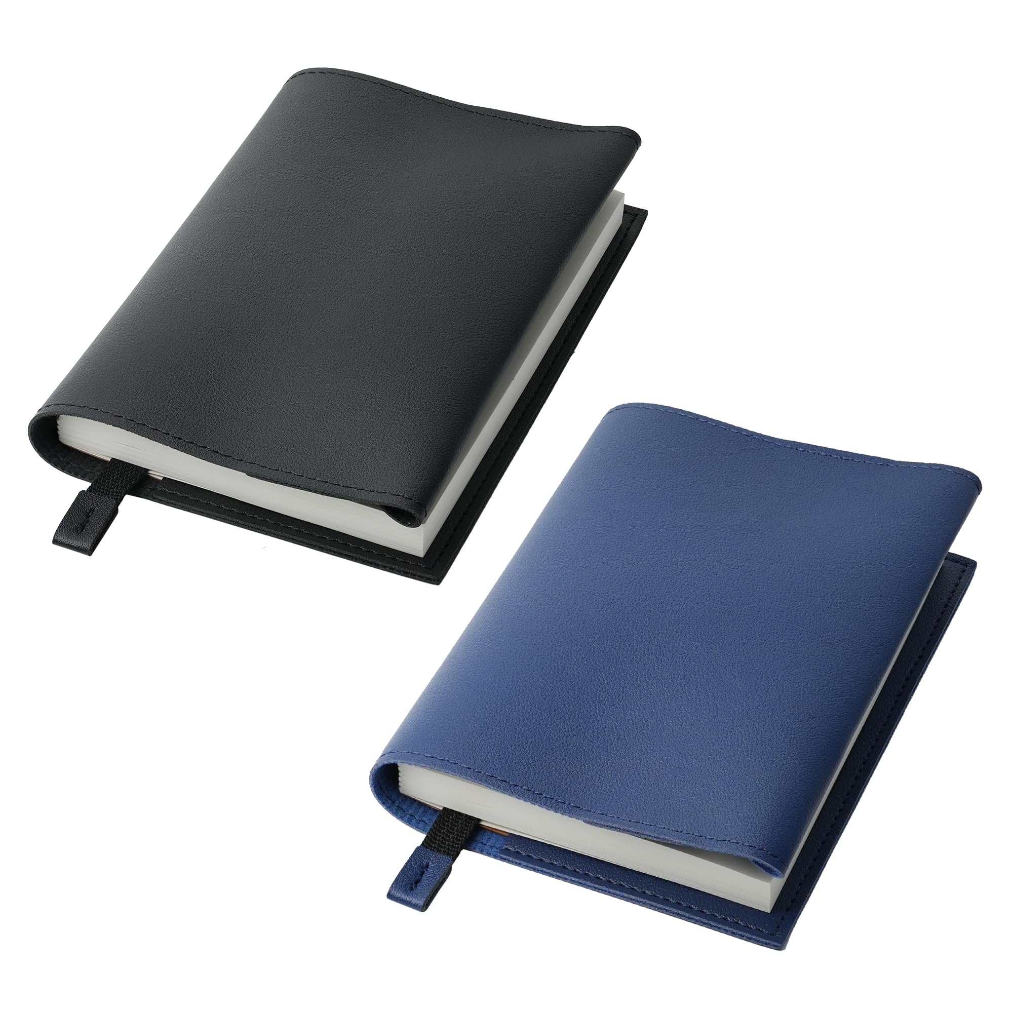 ブックカバー 厚み調整可 しおり強化 合成レザー 文庫サイズ (ブラック A6)