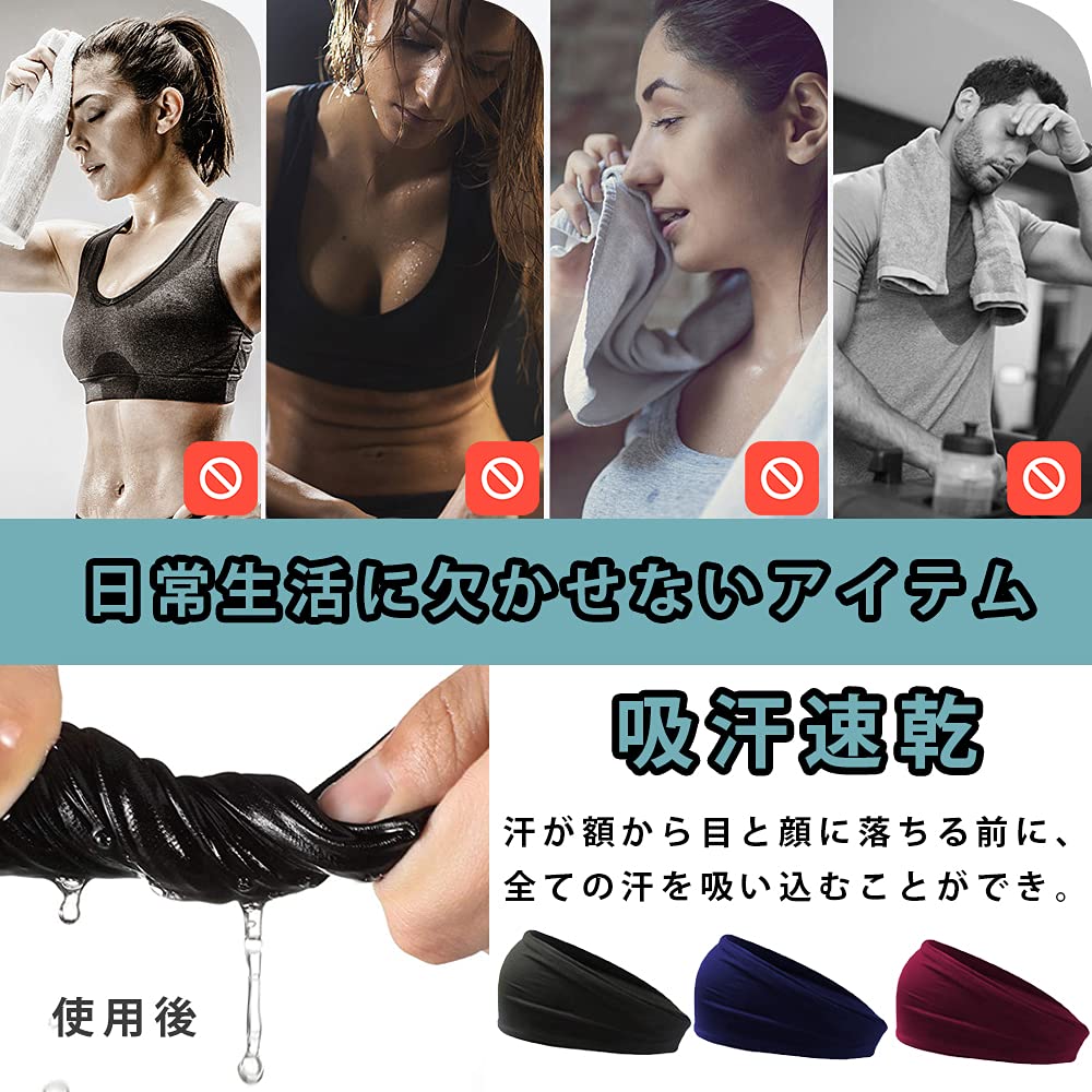 ヘッドバンド ヘアバンド 汗止め メンズ レディース スポーツターバン 洗顔用 通気性 伸縮性 軽量 吸汗速乾 肌触り 柔らかい 髪留めらかい ランニング ダンス ヨガ 男女兼用 3枚入り