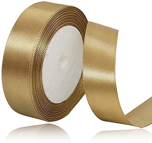 25mm シャンパンゴールド サテンリボン、23メートル手芸用ファブリックリボン、ギフトラッピング、ヘアリボン、誕生日や結婚式の装飾