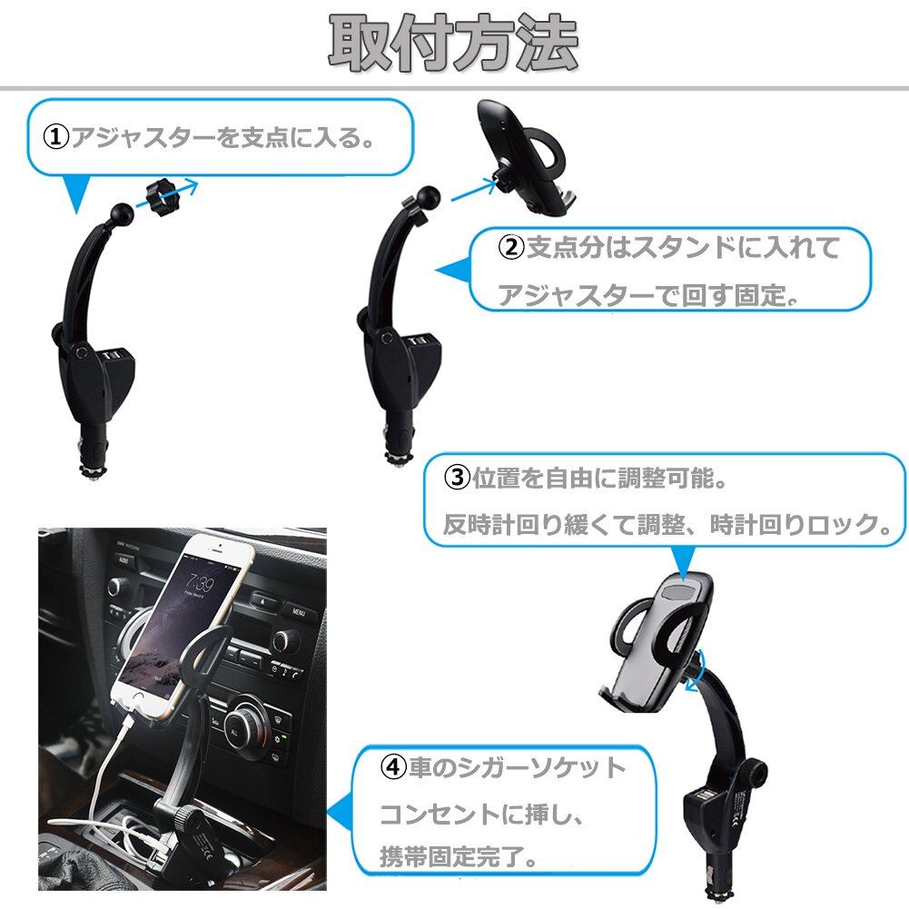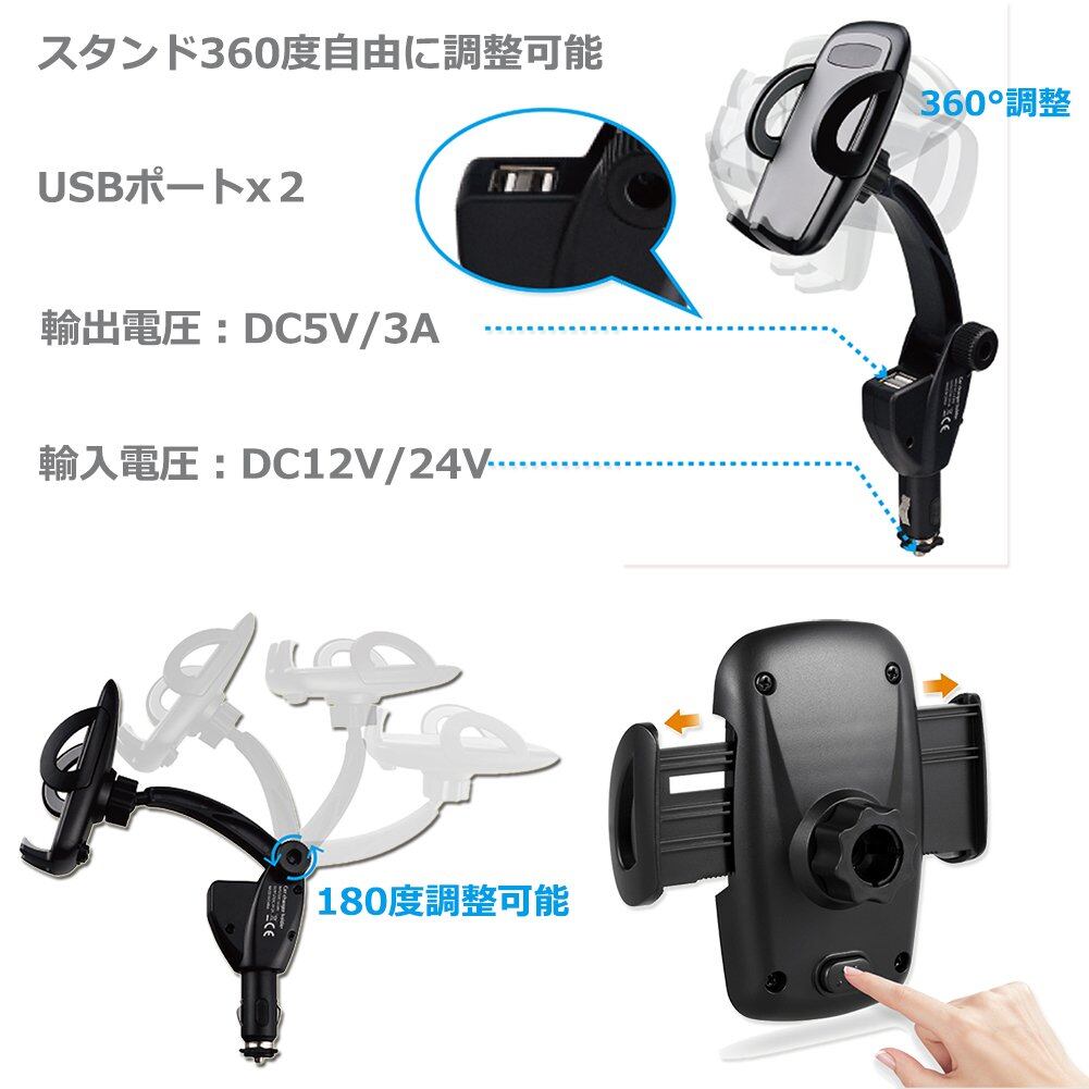 シガーソケット付、シガーソケット挿し、簡易に固定できて、USB端子もあるし、携帯に充電可能です。(DC12V/24V車に対応)