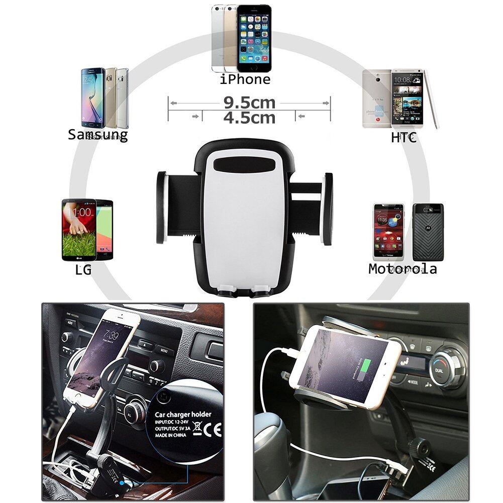 【人気商品】DELAM 車載ホルダー オートホールド式 シガーソケット付き携帯スタンド USBポートx2 スマホホルダー 360度回転可能 出力5V3A GPSスタンド iphone/Sony Xperia/Samsung Galaxy/Huawei/ASUS zenfone/Google Nexus/HTCスマートフォン対応 ブラック+グレー | asaRulu0511