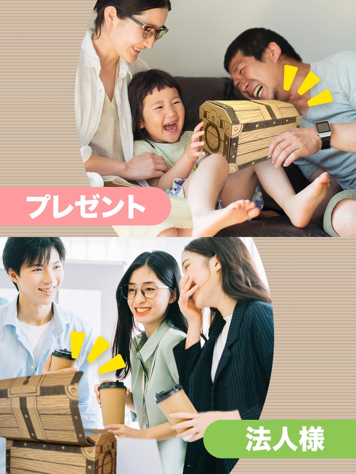 「どんなお菓子が入ってるかな?」開けるのがワクワク、ドキドキするような宝箱に、小分けにされた個包装の駄菓子をパンパンに詰め合わせた状態でお届けとてもおしゃれな宝箱デザインなので、お菓子を楽しんだ後は子供の宝物を保管する収納ボックスとしてもおすすめです。 ・人気の小袋駄菓子をアソートしました!「だがしランキング」にて高評価の人気お菓子を厳選!駄菓子好きにはたまらないラインナップ!