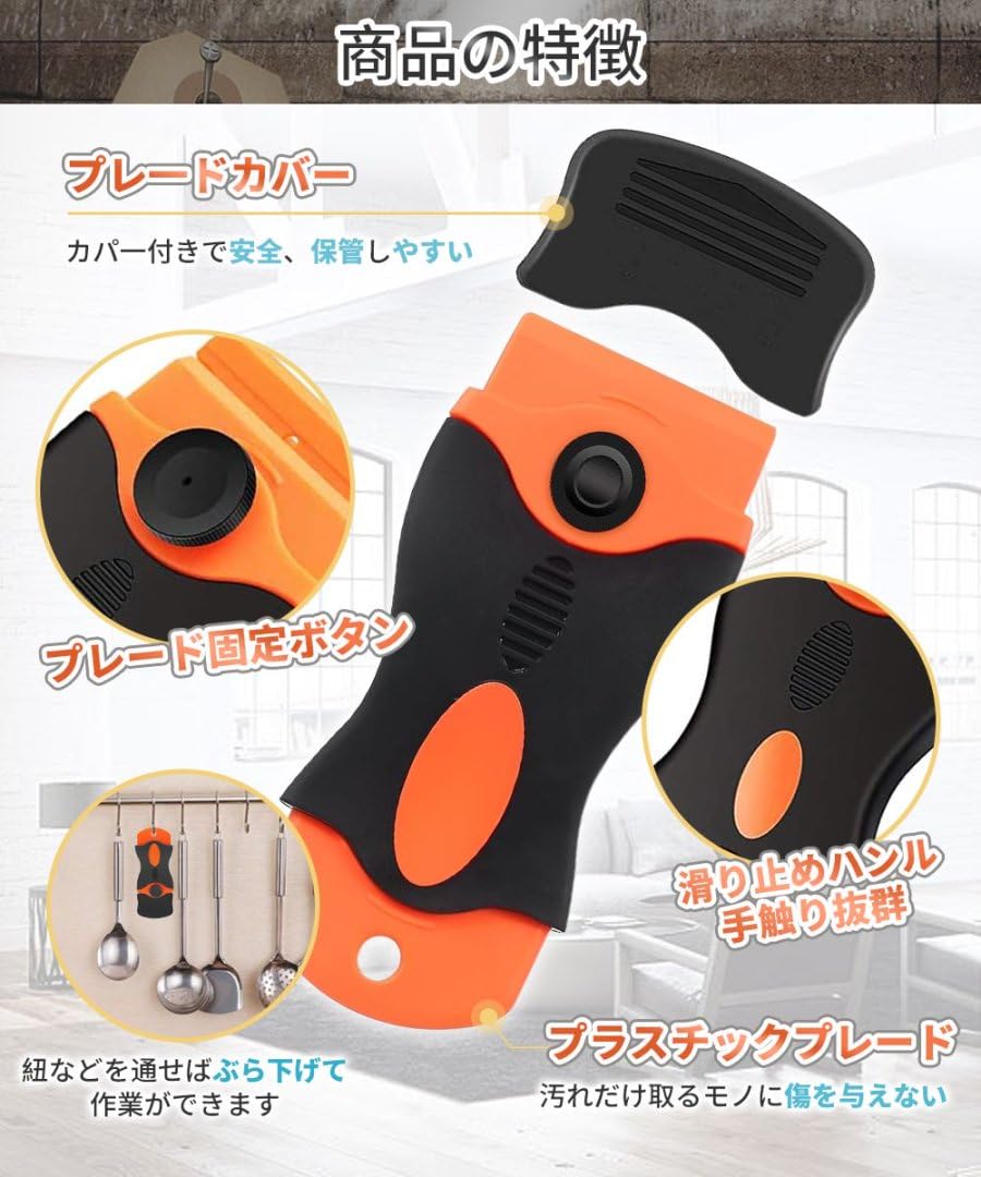 【セット内容】2種類のスクレーパーブレード、プラスチック刃×5個、ステンレスブレード×5個が付属、プラスチック製保護キャップ付。安全性がもっと高いです。