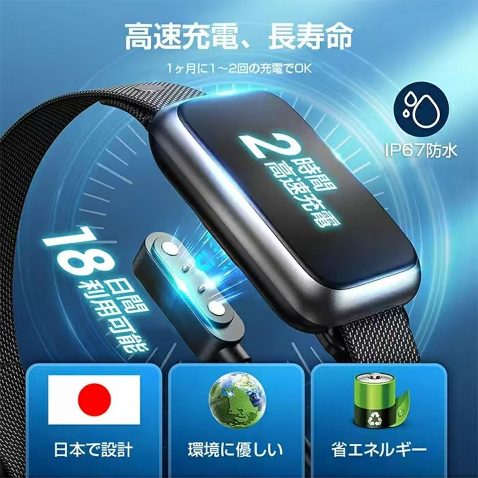 【充電式の吠え防止首輪】 わずか 1 ~ 2 時間で充電され、約 18 日間使用できます。IP67 レベルの防水犬用首輪は、どんな天候でも屋外で使用できます。マグネット充電方式で、該製品の防水性が大幅に向上し、どこでも愛犬をトレーニングできます。 スマートセンサーとチップを搭載したこの吠え首輪は、特定の周波数とデシベルで犬の吠え声を検出し、他の音や他の犬によって誤ってトリガーされることはもうありません。