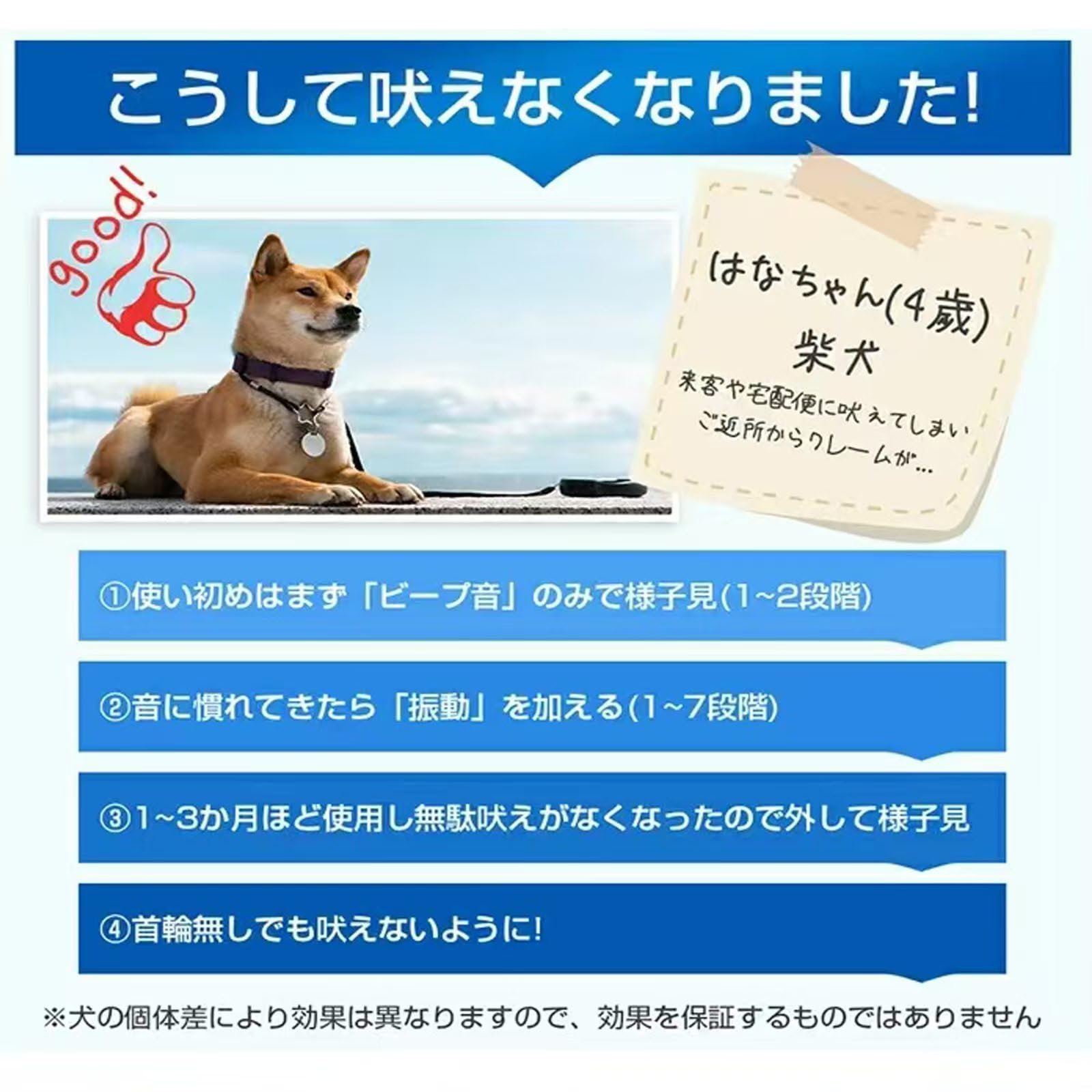 【2024年最新小型無駄吠え防止首輪】 より高い無駄吠え防止効果、電気ショックないモードの無駄吠え防止首輪です。この用品は、効率的で安全な3つのトレーニングモードを持っています: ビープ音、振動(1-7レベル)、ビープ音と自動保護。犬が吠えると、センサーを触発して製品を作動させます。首輪はピーと音が鳴ってから振動し、振動が続きます。 (設定によって異なります) 効果的で使いやすい、愛犬を安全にしつけることを保証でき、愛犬に無害の無駄吠え防止首輪です。