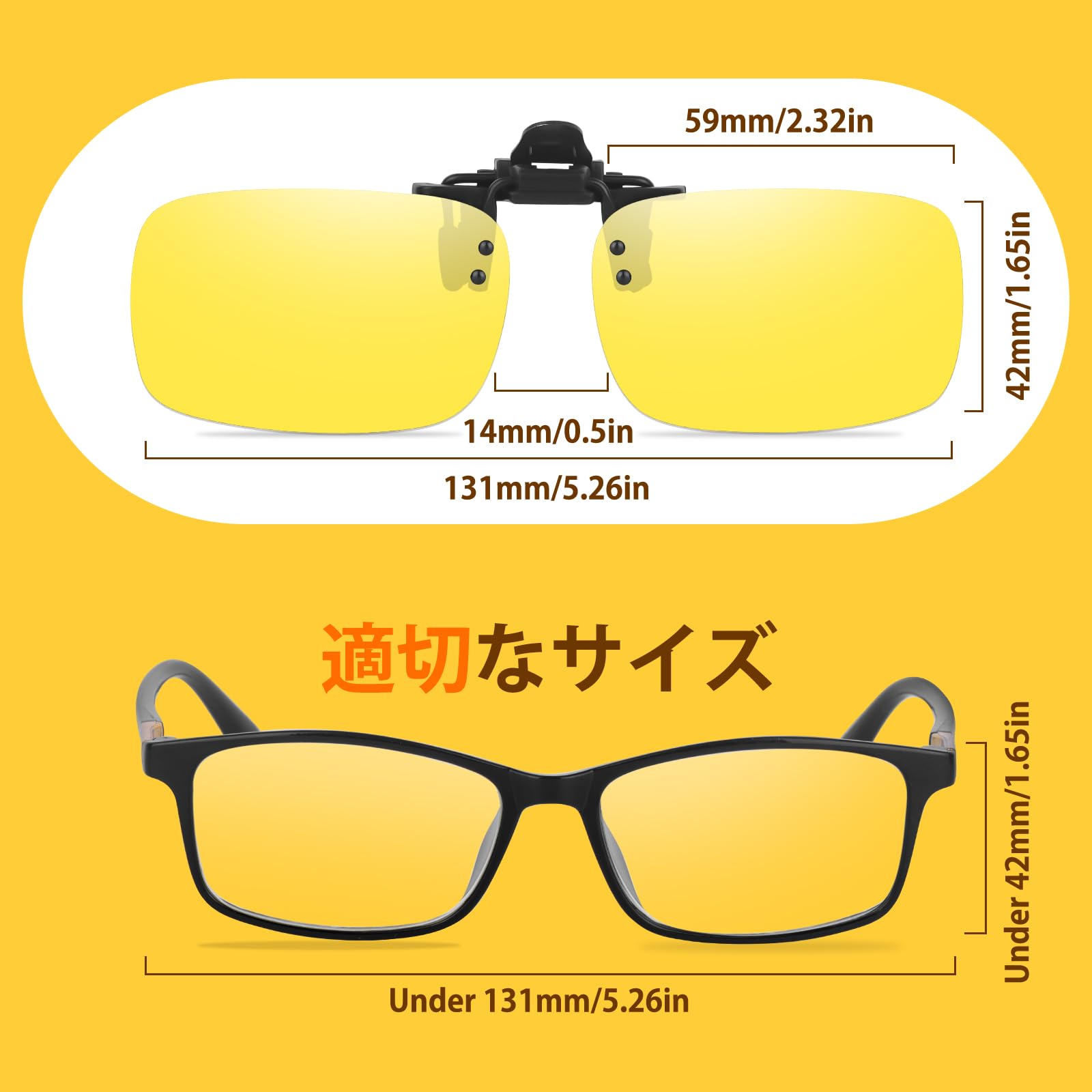 メガネをかけている方にぴったりの便利なサングラス - メガネを掛けていると、サングラスをかけるのが不便ですが、このクリップオンサングラスなら、レンズの形を変えずに、色を変えるだけで簡単にサングラスに変身!自分のメガネに挟むだけで、安定してフィットし、グラつかず快適です
