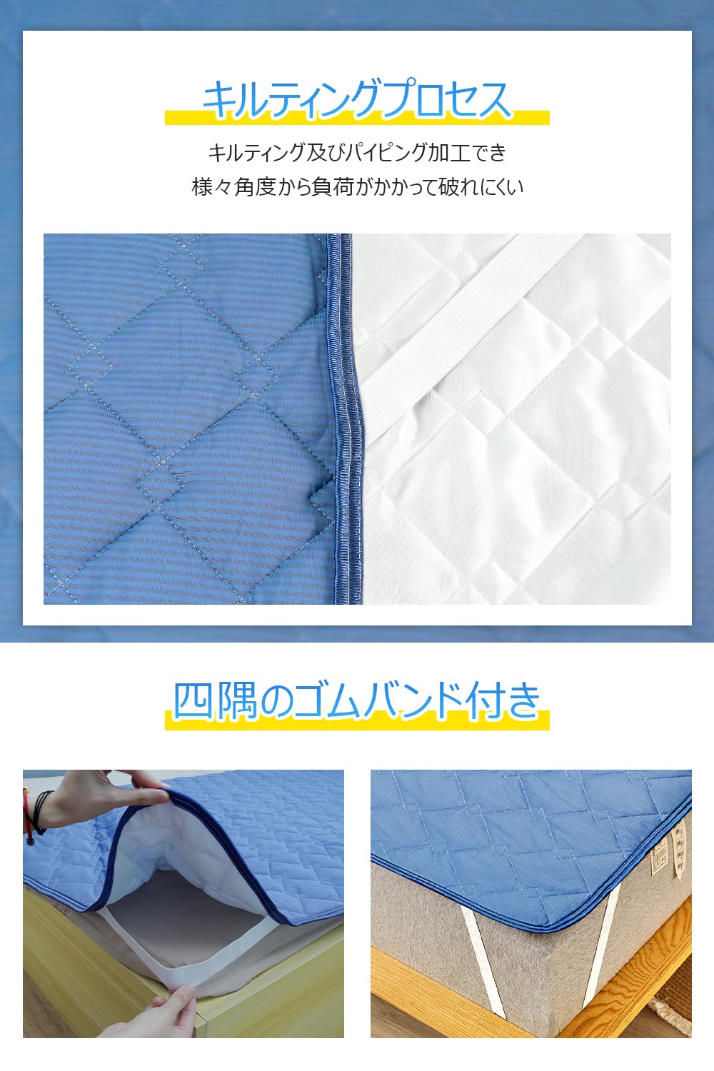 【ゴムバンド付き&洗濯機で洗え】四隅に固定ゴムがついていて、ゴムの弾力性がに優れて、マットレスや敷き布団の上に簡単にかぶせることができて、しっかり固定にしてずれにくいです。キルティングとパイピング加工で敷きパッドをもっと丈夫にし、洗濯機でま丸洗いできます(ネット使用のはお勧めです)。早く乾かす素材ので、清潔好きでよく着替える方に便利です。