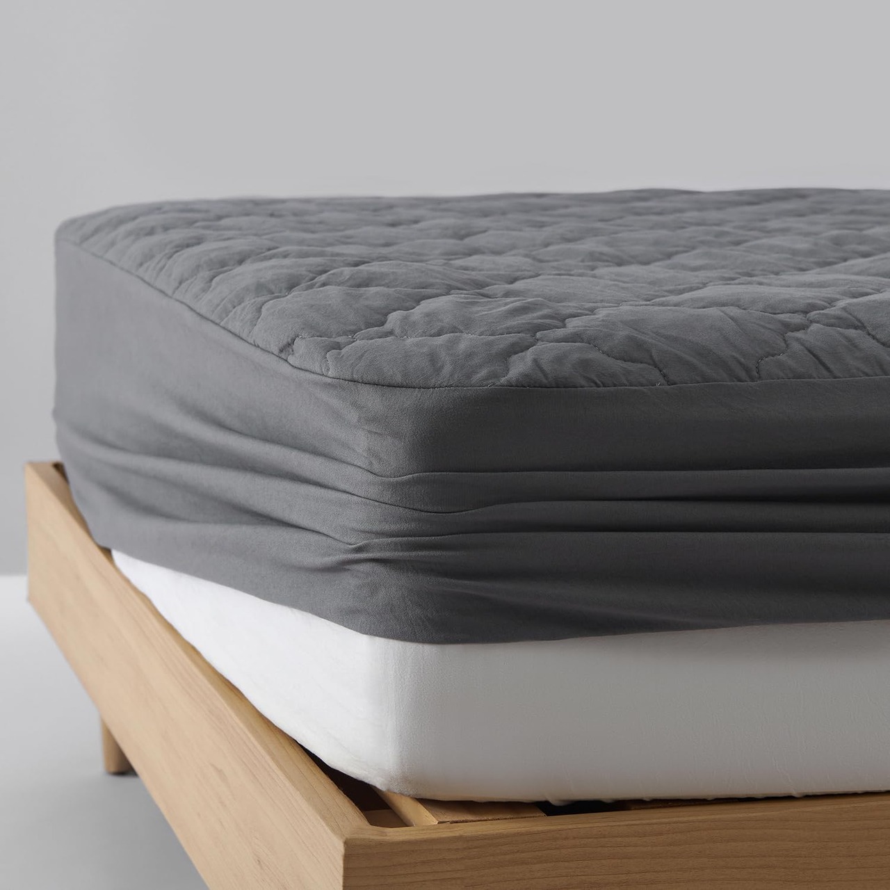 【在庫処分】クモリ(Kumori) ボックスシーツ セミダブル 洗いざらし 柔らかい 一体型ボックスシーツ 耐久性が高い 洗える 吸湿速乾 1枚2役 オールシーズン 敷きパッド 着脱楽々 時短 ズレにくい クッション性あり パッドとシーツが合体してお手入れ簡単 ベッドシーツ ダークグレー 120X200cm | asaRulu0511