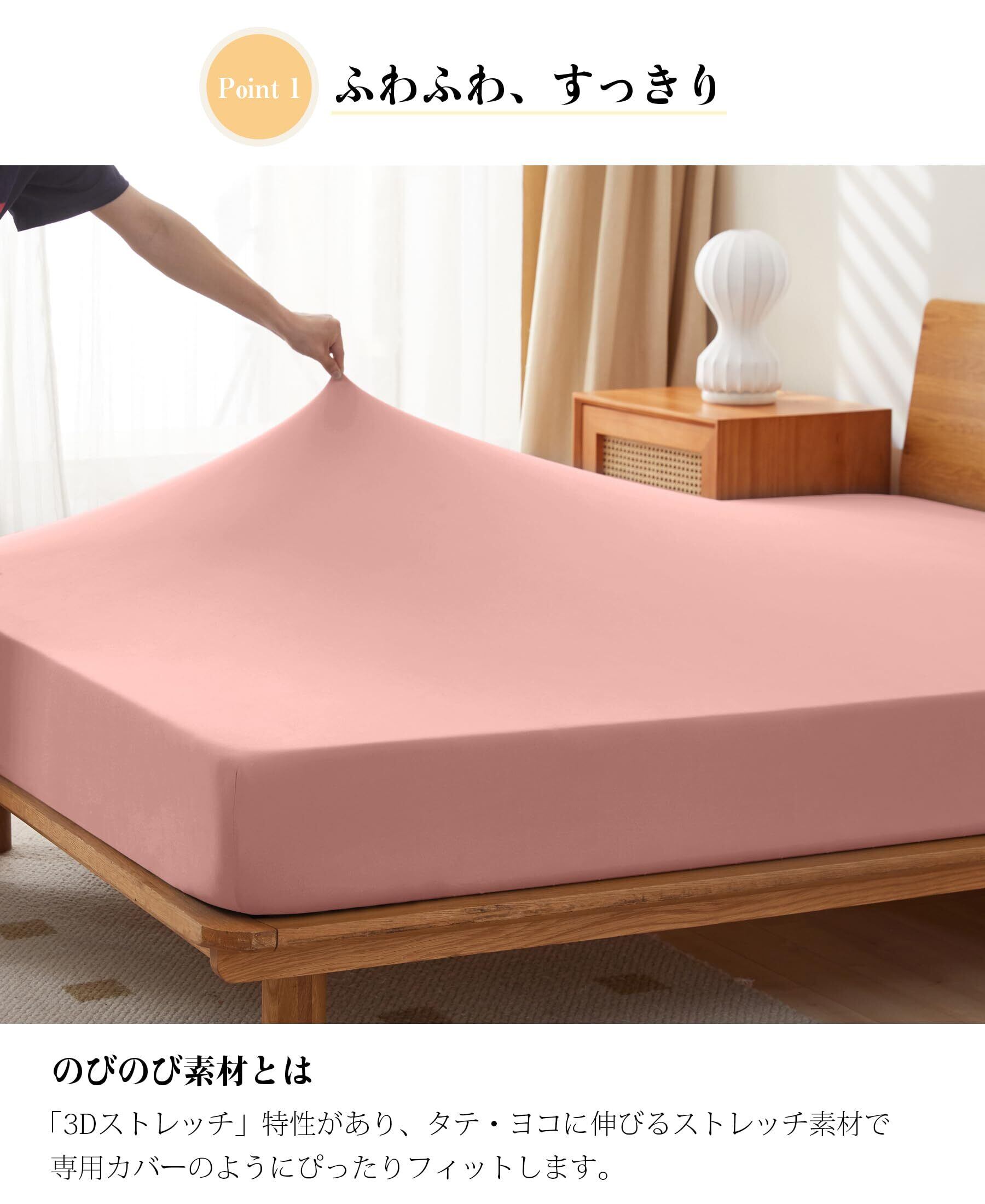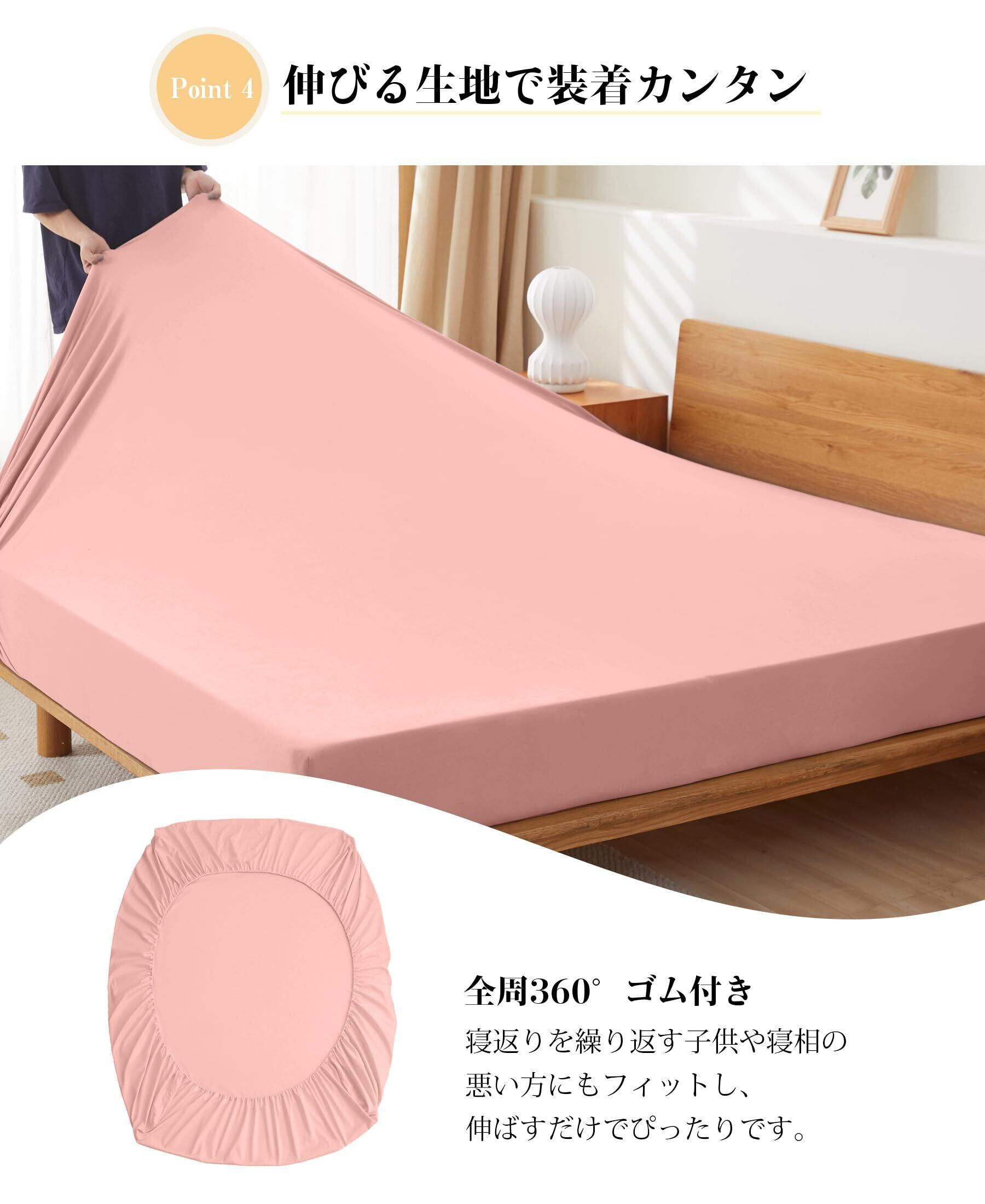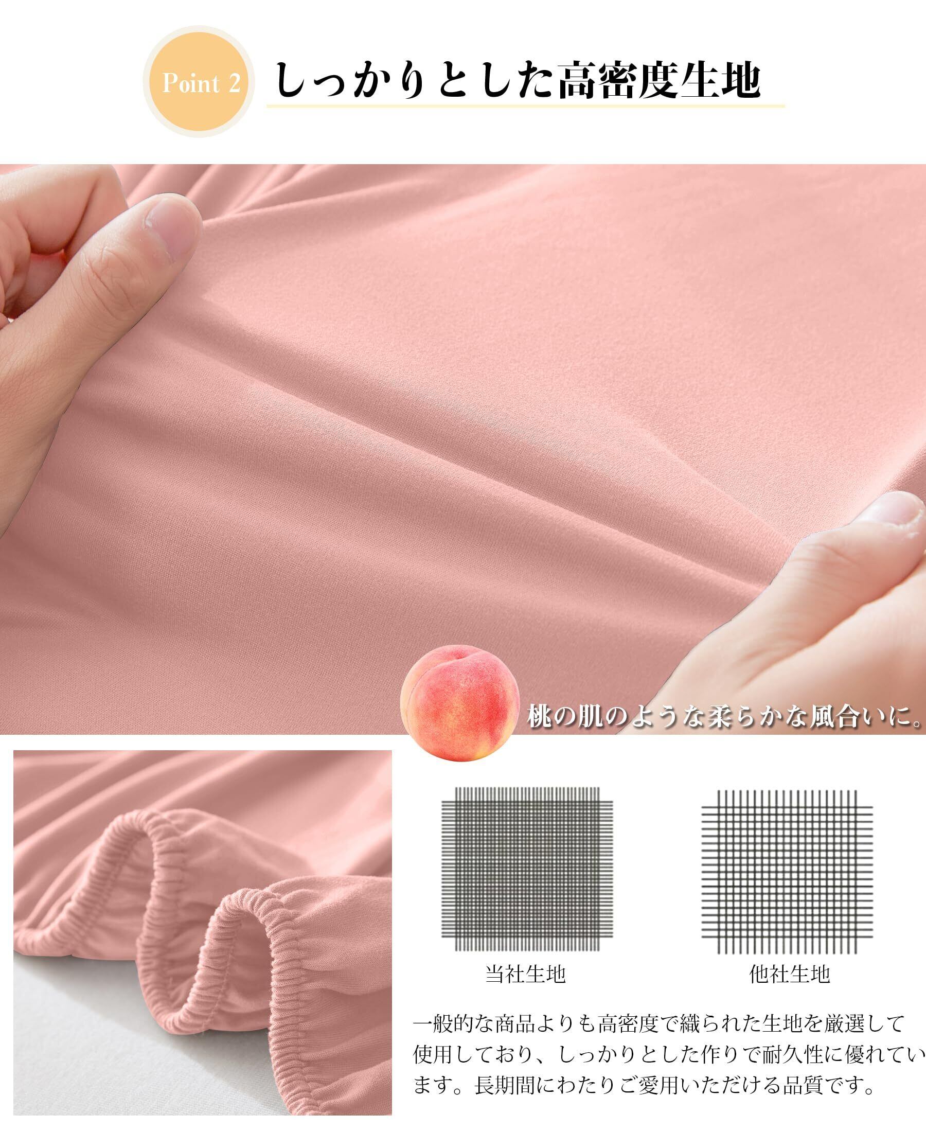【高品質の弾力性】優れた伸縮性で、誰でも簡単に伸ばせます。洗うだけでぴったりフィット。アイロンがけも不要で、シーツを平らに保ちます。裏面は総ゴム仕様なので、かぶせるだけで着脱簡単。寝返りを打ってもシワになりません。