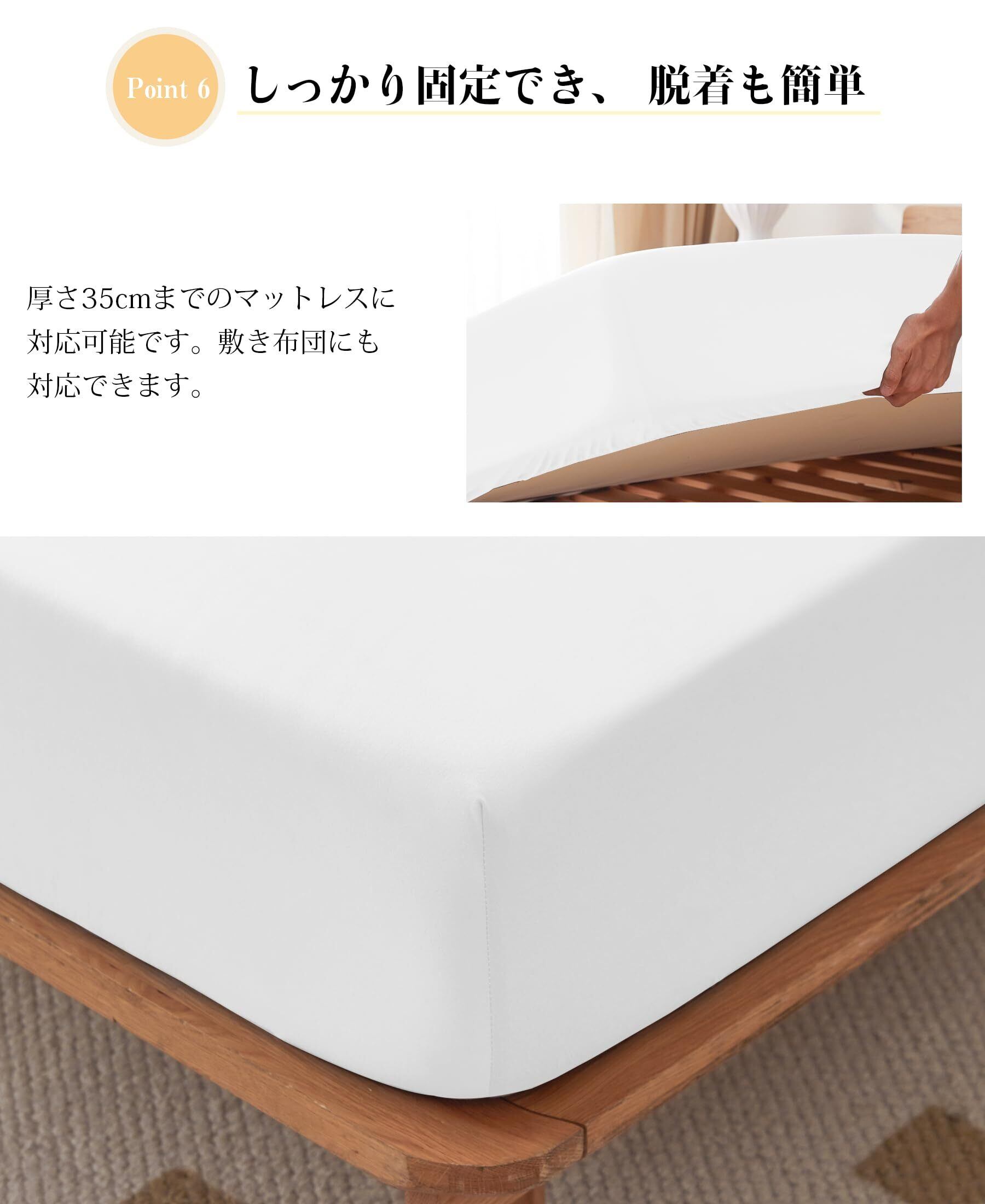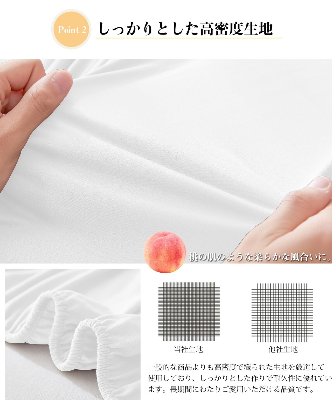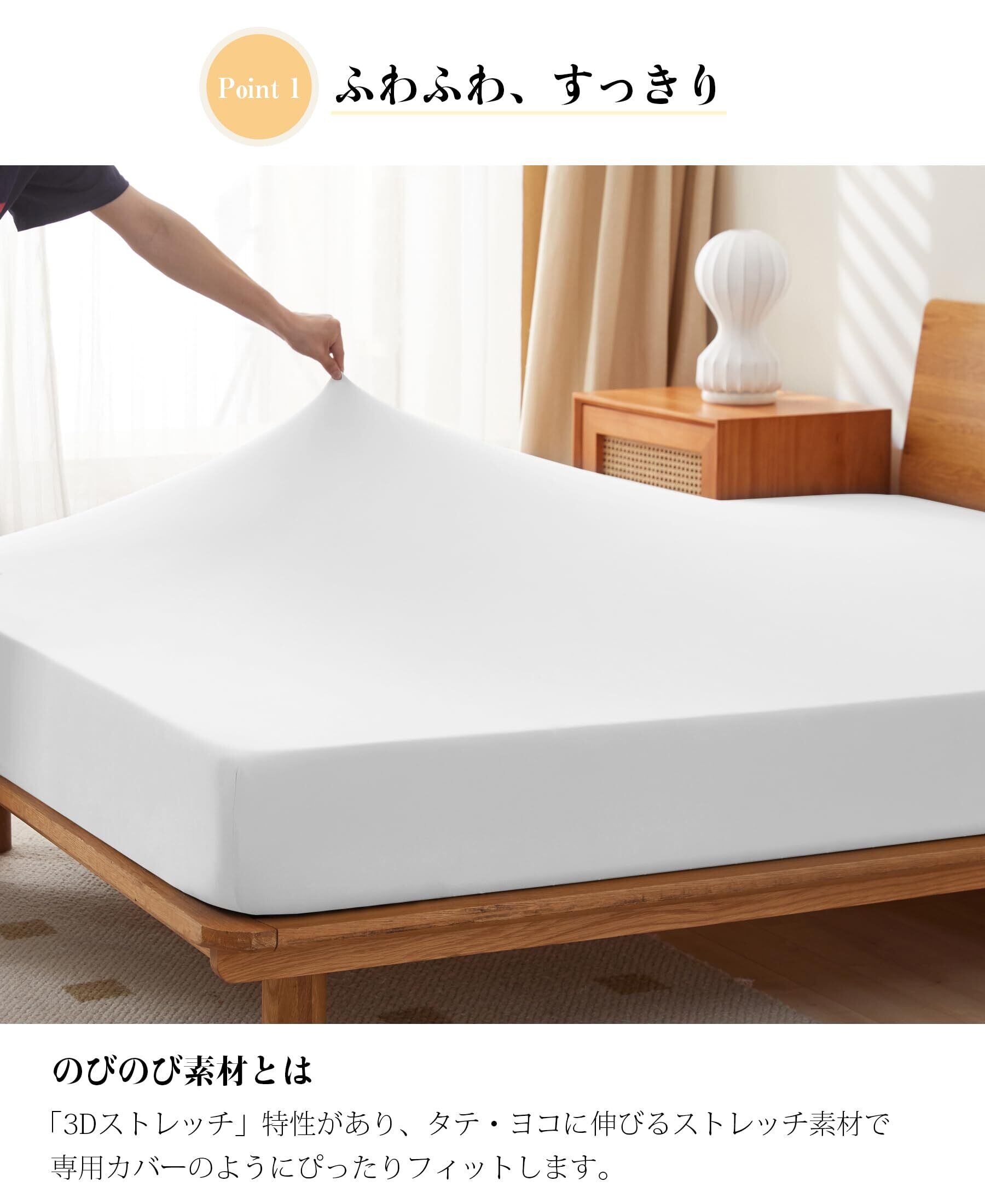 【高品質の弾力性】優れた伸縮性で、誰でも簡単に伸ばせます。洗うだけでぴったりフィット。アイロンがけも不要で、シーツを平らに保ちます。裏面は総ゴム仕様なので、かぶせるだけで着脱簡単。寝返りを打ってもシワになりません。