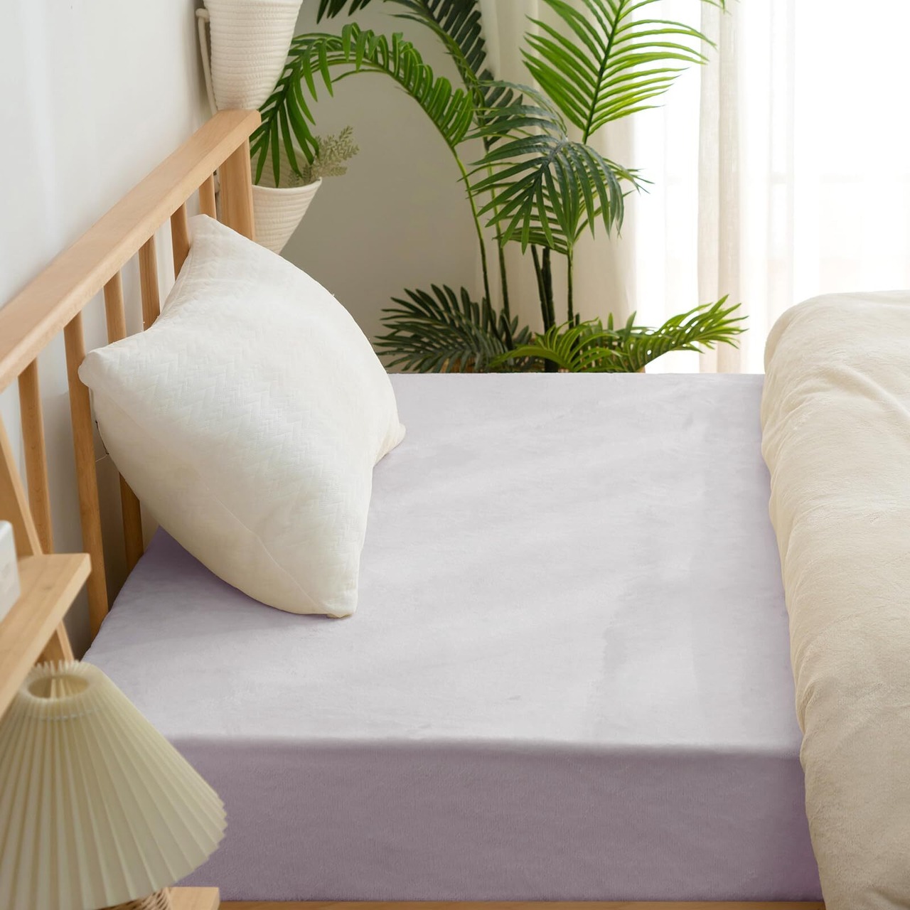 fuwawa ボックスシーツ セミダブル 洗える あったか 暖かい 吸湿発熱 冬用 防寒 寒さ対策 ベッドシーツ ベッドカバー 布団 カバー 寝具 ヒートウォーム ボリューム ふわふわ 秋冬 無地 北欧 120×200cm・パープル
