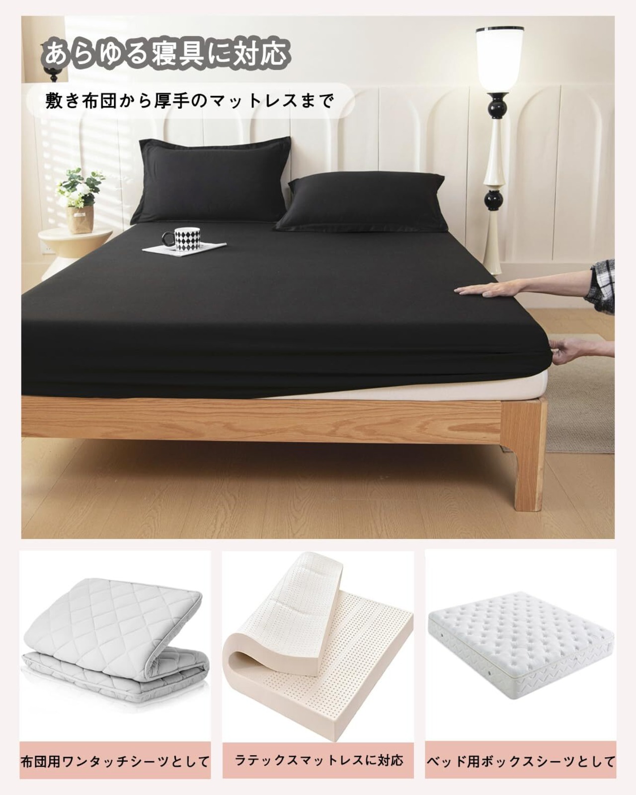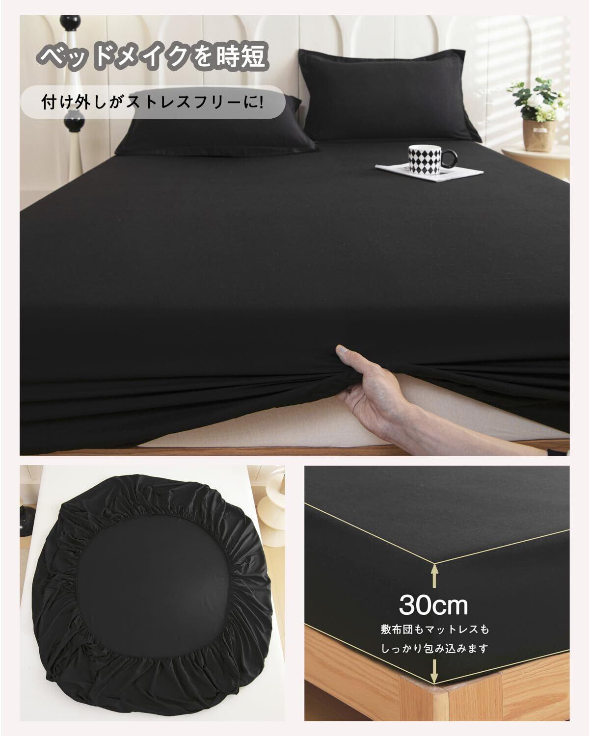 【ボックスシーツのサイズ】:セミダブル 120×200cm×マチ30cm ブラック。シーツのマチが30cmあるので、敷布団もマットレスもしっかり包み込みますベッド、マットレス用、敷き布団に、いろいろ使えます、寝相が悪くても大丈夫です。(この製品にはボックス シートが 1 つしかなく、他の製品は含まれていません。)