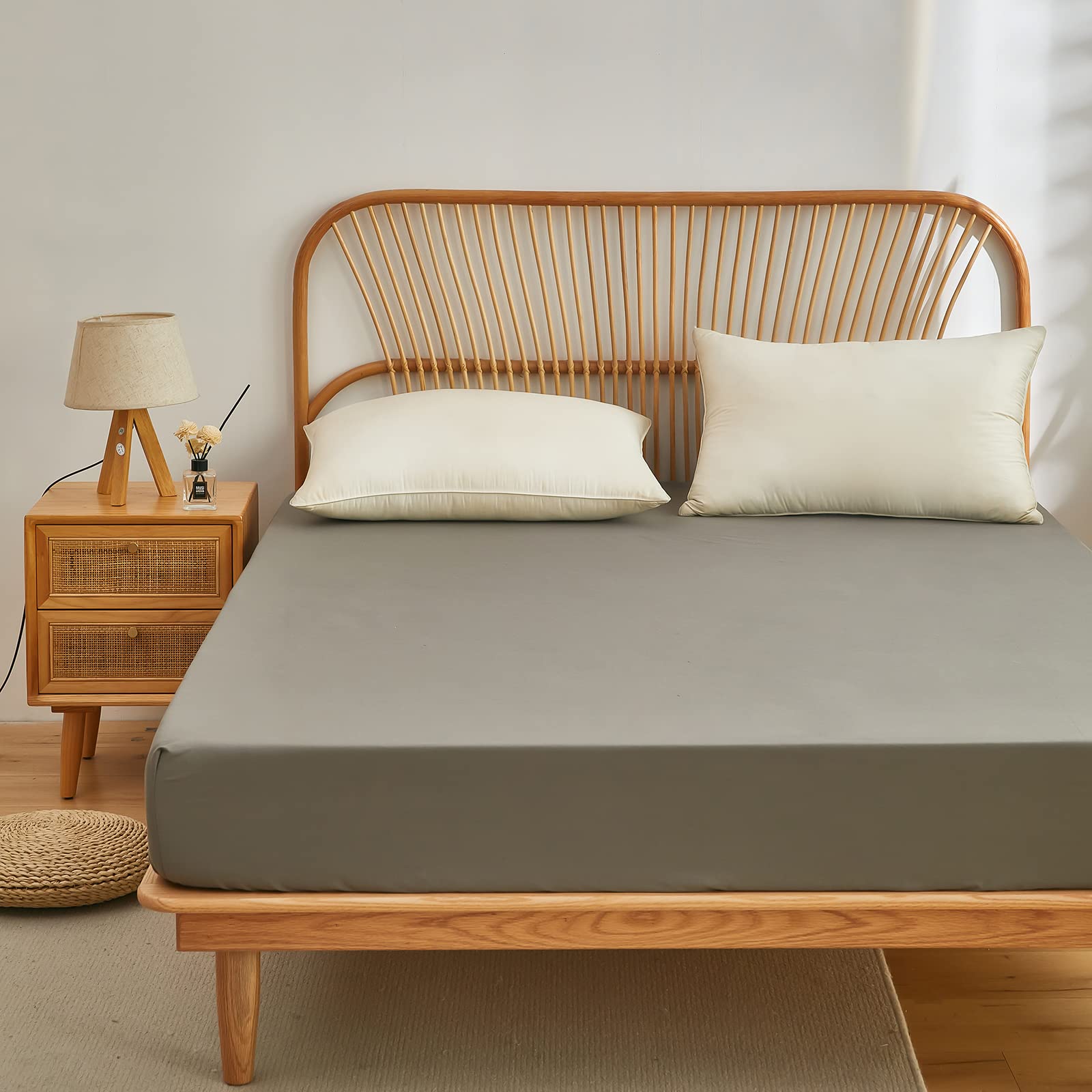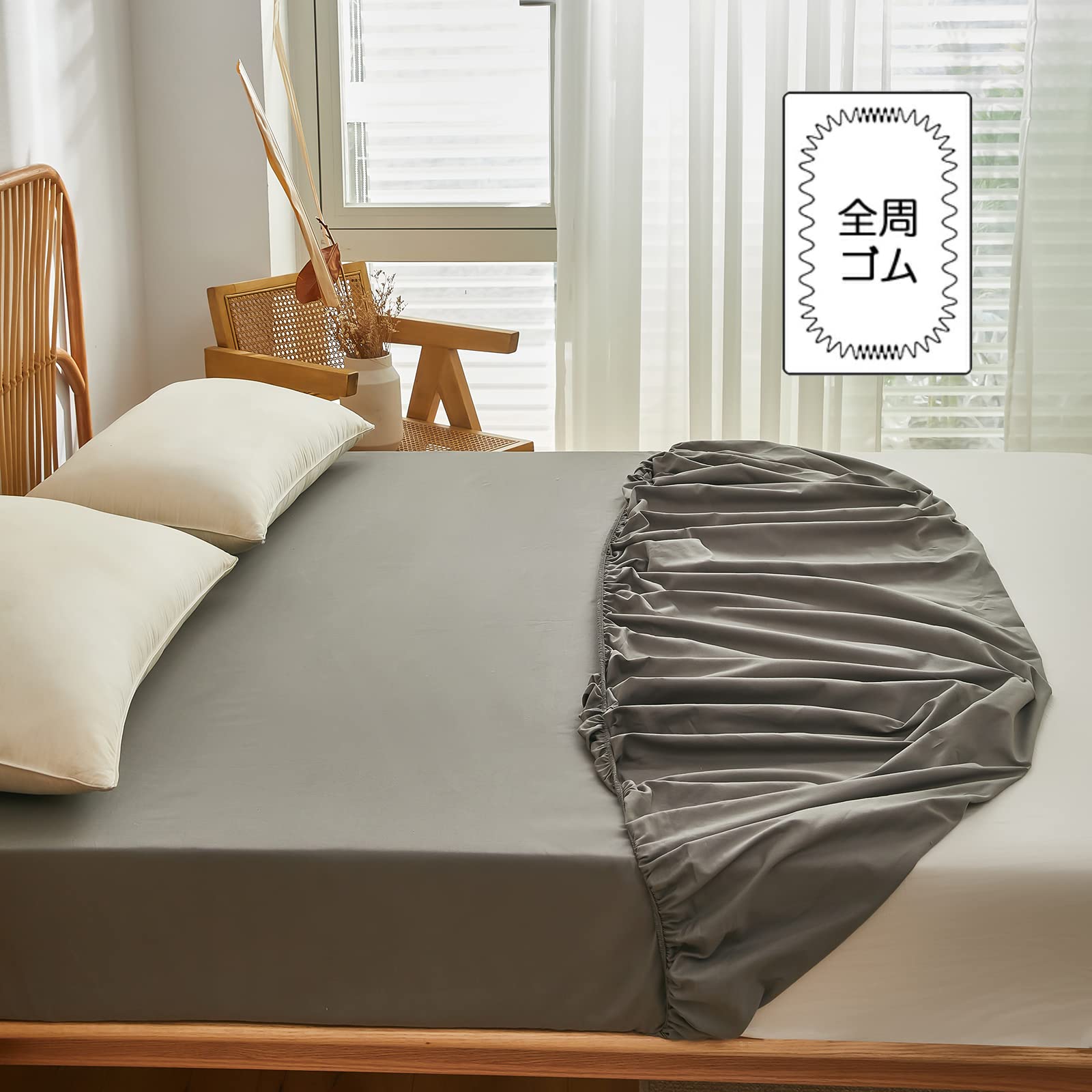 ボックスシーツ ベッドカバー ワイドダブル 周囲ゴムフィット式 綿100% 夏すずしい 冬あったかい 無地 ダックライン 150×200×30cm