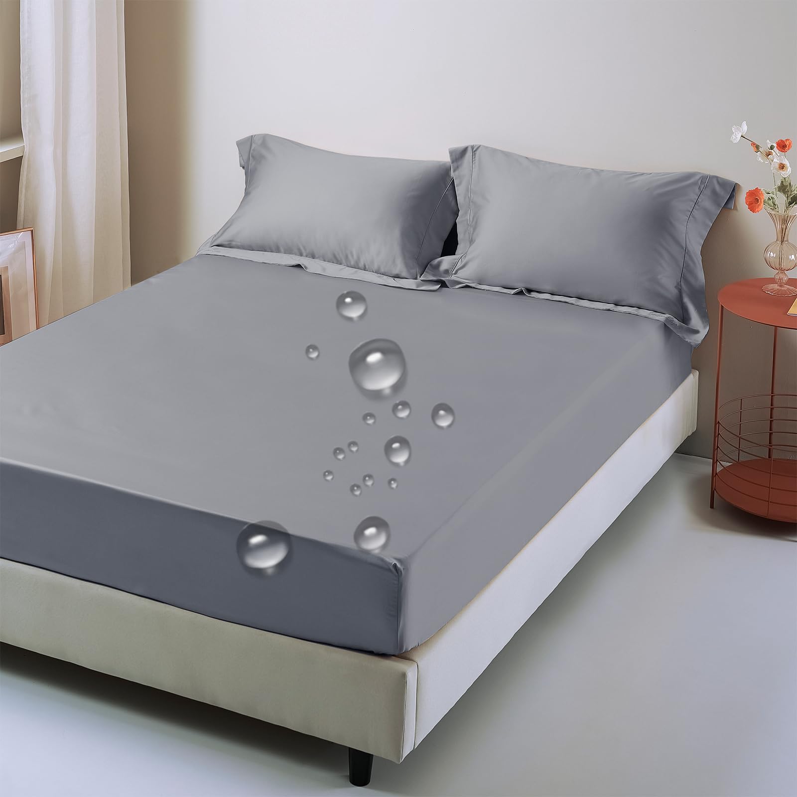 YINFUNG 防水シーツ シングル ボックスシーツ 側面完全防水 マットレスカバー シングルベッド シーツ おねしょシーツ 大人用 介護用防水シーツ 敷布団 シーツ ベッド シーツ ピーチスキン加工 抗菌防臭防ダニ 透湿速乾 丸洗い可能 (グレー·シングル·100×200cm)