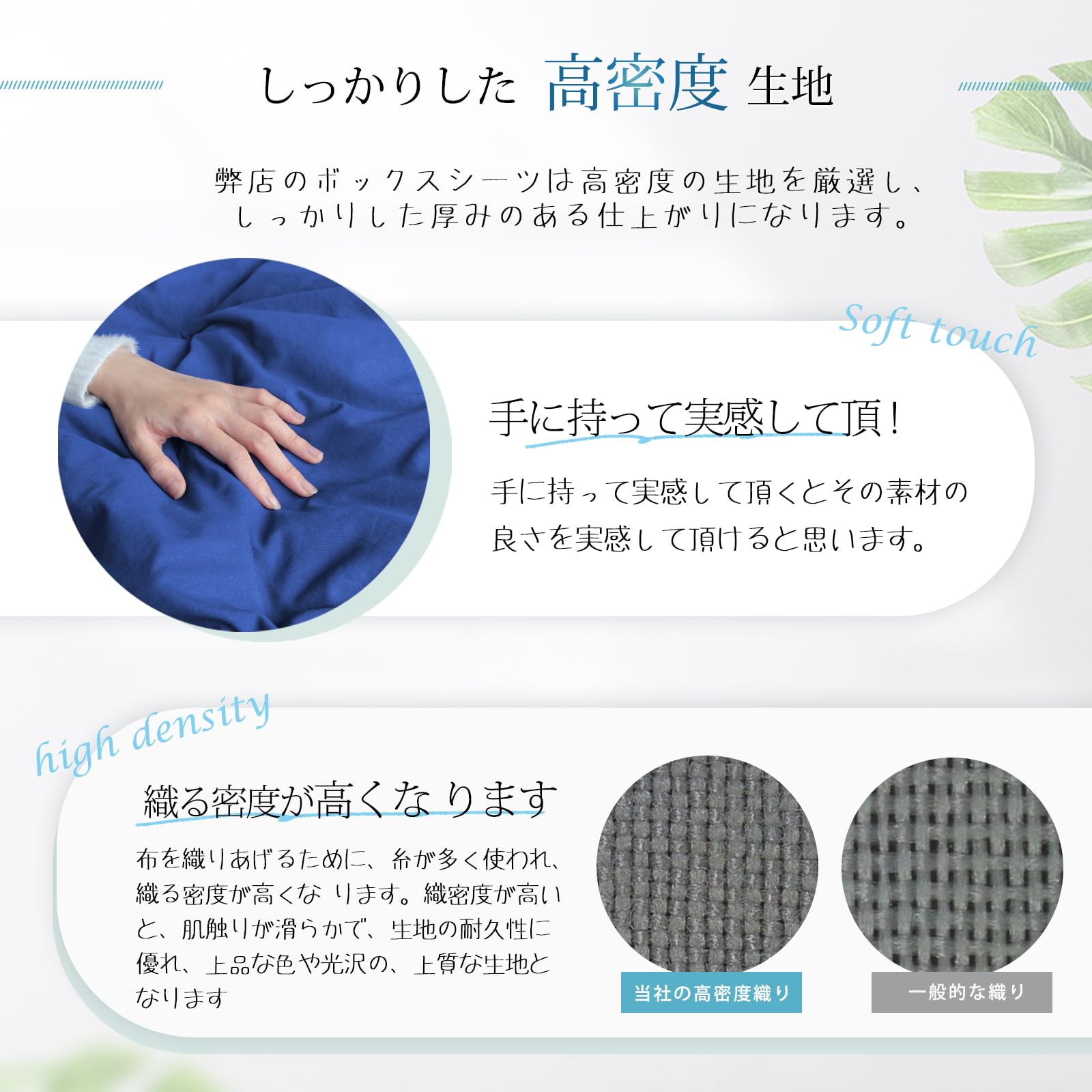 【ズレ防止全周ゴム】シーツの裏面は全周ゴム仕様になっているので、すっぽり被せるだけで着脱簡単です!寝相を気にすることなく朝までぐっすり!【オールシーズン向け】暑い季節は汗を吸いやすく、寒い季節は保温性に優れています。また通気性もよい、汗をかいても素早く湿気を吸い取り、発散してくれるので、いつでもサラサラとしています。一年を通じてお使いいただけます。