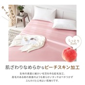 【肌触り】生地にピーチスキン加工を施しました。きめ細やかな起毛により柔らかくなめらかな風合いはまるで桃の肌に包まれるような肌触りをお楽しみいただけます。また、水洗い加工で自然なやわらかさに仕上げました。
