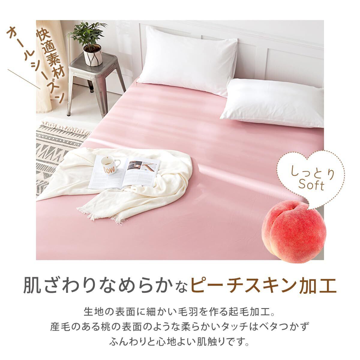 水洗いシワ加工 パステルカラー ボックスシーツ サイズ 100×200×30cmシングル 120×200×30cmセミダブル 140×200×30cmダブル カラー ピンク/ブルー/グリーン/アイボリー/グレー/ベージュ/ブラウン 材質 ポリエステル100% 生産国 中国 お洗濯について ・お洗濯の際は洗濯ネットに入れてお洗いください。 ・色落ち、色移りする場合がございます。他のものと一緒に洗わないでください。 ・塩素系漂白剤はご使用をおやめください。 ・洗剤は無蛍光洗剤をご使用ください。 商品説明 水洗いシワ加工で自然なやわらかさを表現したボックスシーツです。 厚さ25cmまでのマットレスに対応 オールシーズン季節を問わず使えます。 表面にピーチスキン加工を施し薄起毛による風合い豊かでしっとりなめらかな肌触りに仕上げました。 全周ゴムタイプで着脱しやすくズレにくくストレスフリー ご自宅の洗濯機で丸洗いが可能です。 乾きやすくシワになりにくい素材でお手入れがとっても簡単で 気軽に洗っていつでも清潔にお使いいただけます。 同シリーズの掛け布団カバーやピロケースとセットで揃えると統一感があるオシャレ寝具になりおすすめです。 ※お使いのモニターや照明等により色味が実際の商品と異なる場合がございます。予めご了承ください。