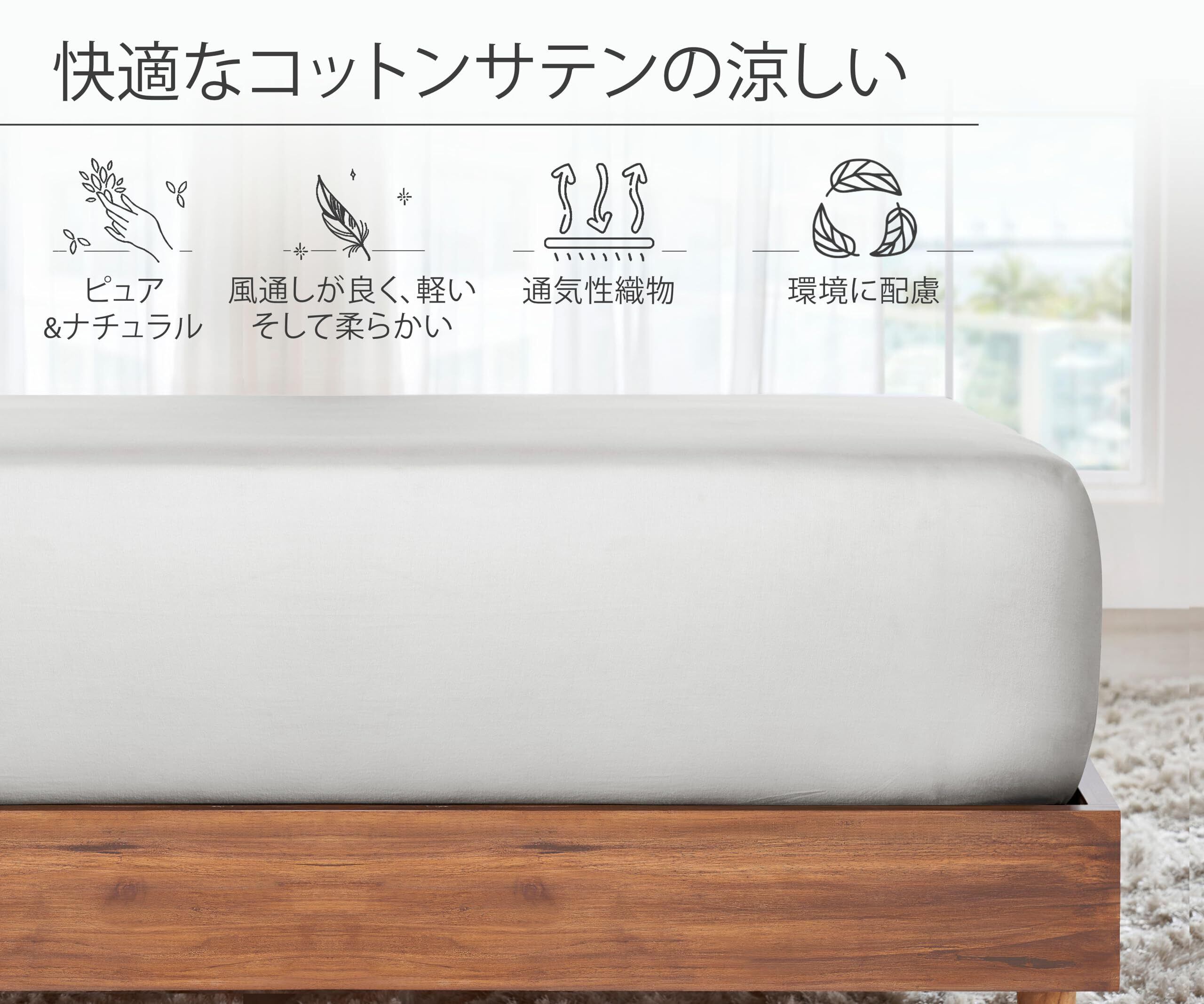 カリフォルニアデザインデン フィットベッドカバー ダブル - 柔らかい綿100%サテン、深いポケット、ずれにくいゴム付き(ダブル、アイボリー)