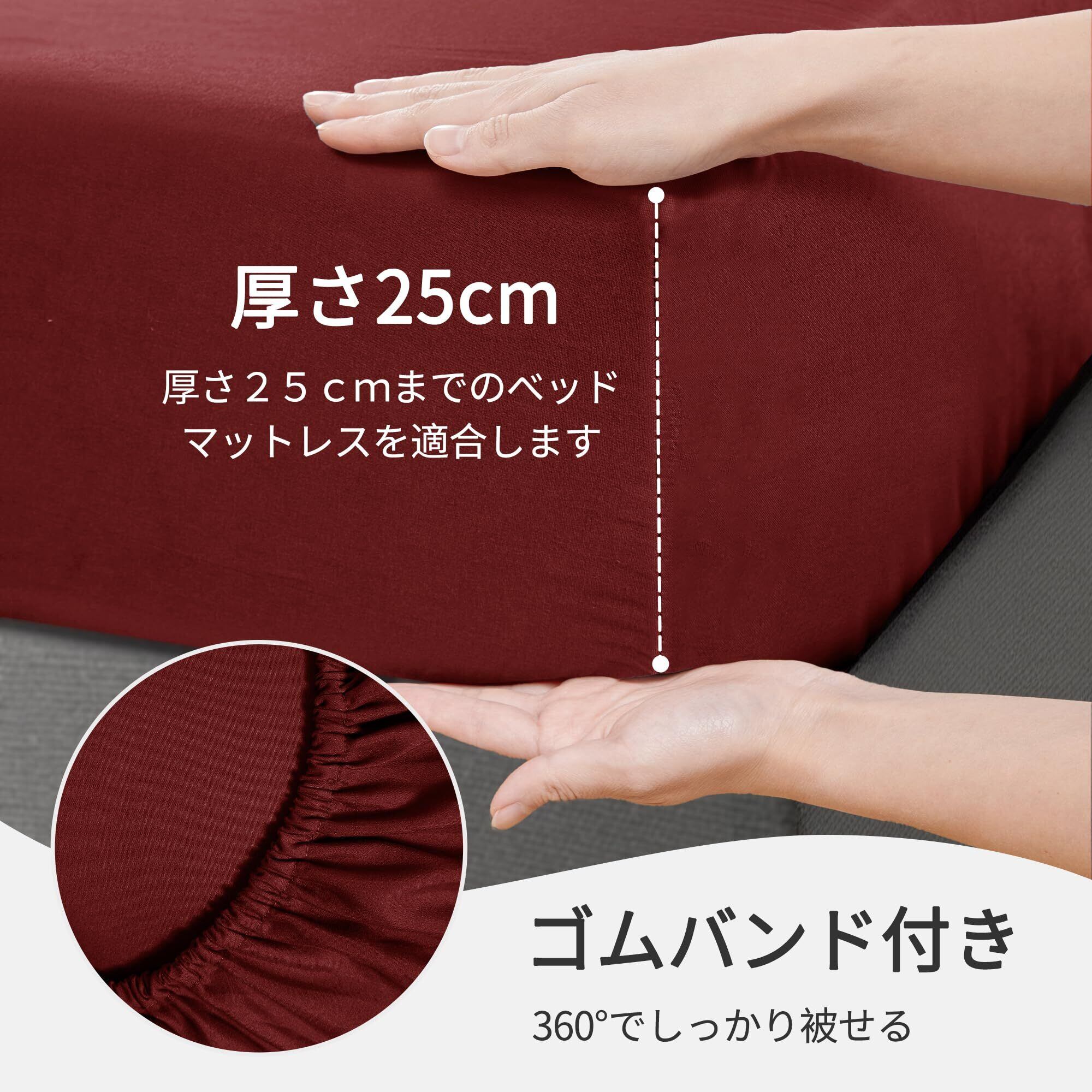 【着脱簡単】掛け布団カバーは全開ファスナー式で、ずれ防止のひも付きます。布団留めひもが4か所付いており、布団のズレを防ぎながら出し入れが簡単です。枕カバーは封筒式です。ファスナーがなく就寝の邪魔になりません。和式用ボックスシーツは全周ゴム仕様です。ボックスシーツには全周ズレ防止ゴムが付いており、マットレスの四隅をぴったり包み込み、フラットでシワになりにくいです。高さ3-28cmのベッド、マットレス、敷き布団に対応できます。