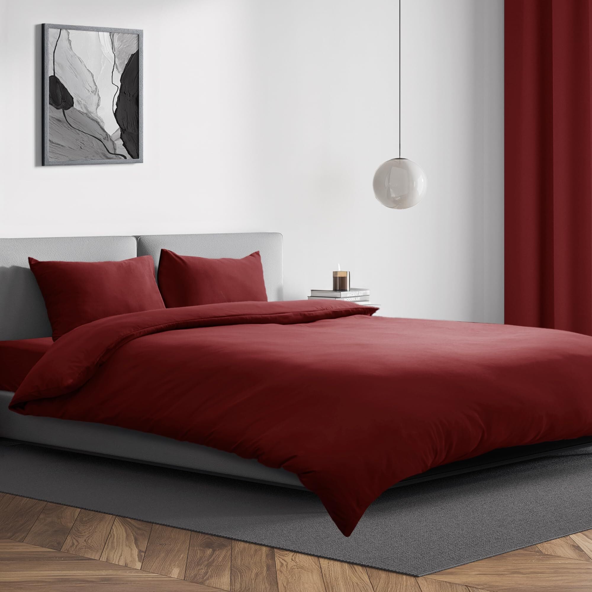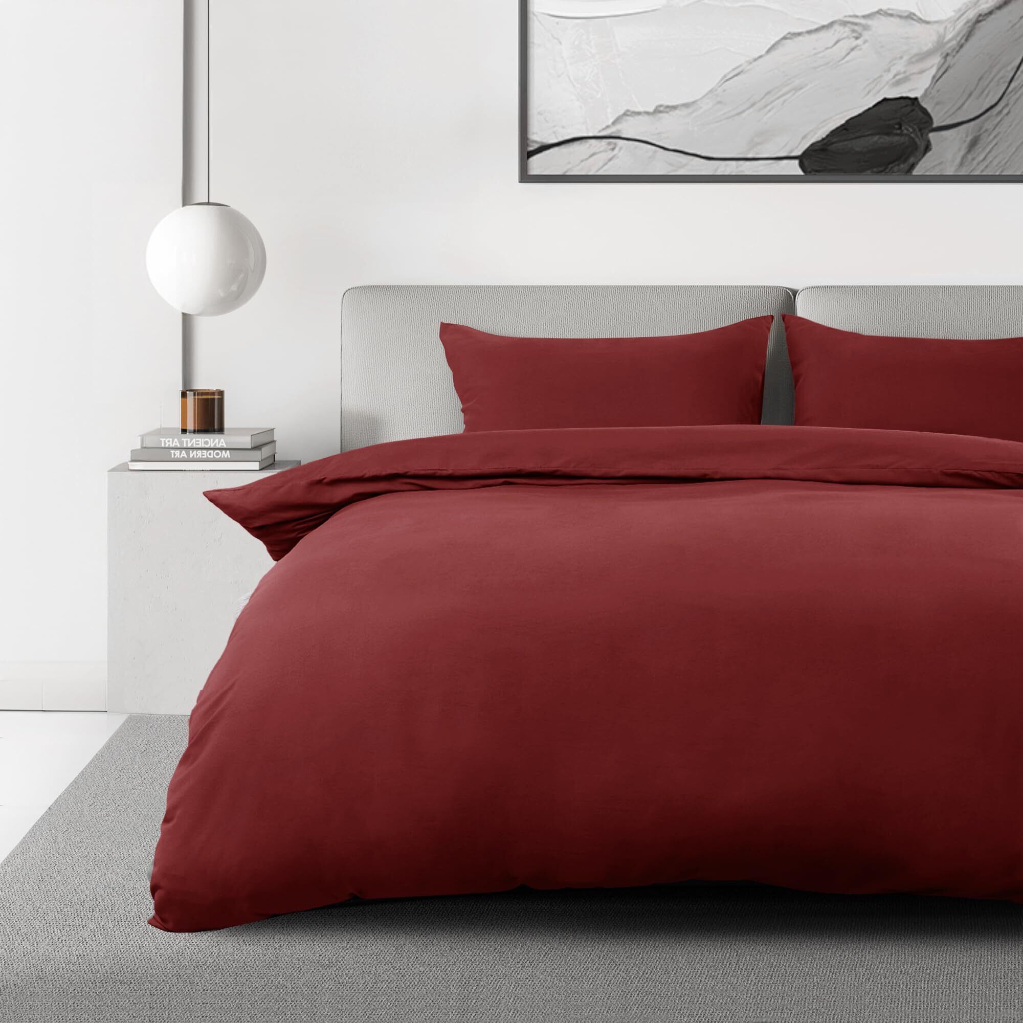 Deconovo 寝具カバーセット 布団カバー セミダブル 4点セット レッド ふとんカバー ボックスシーツ 枕カバー 通気 掛ふとんカバー 丸洗い可能