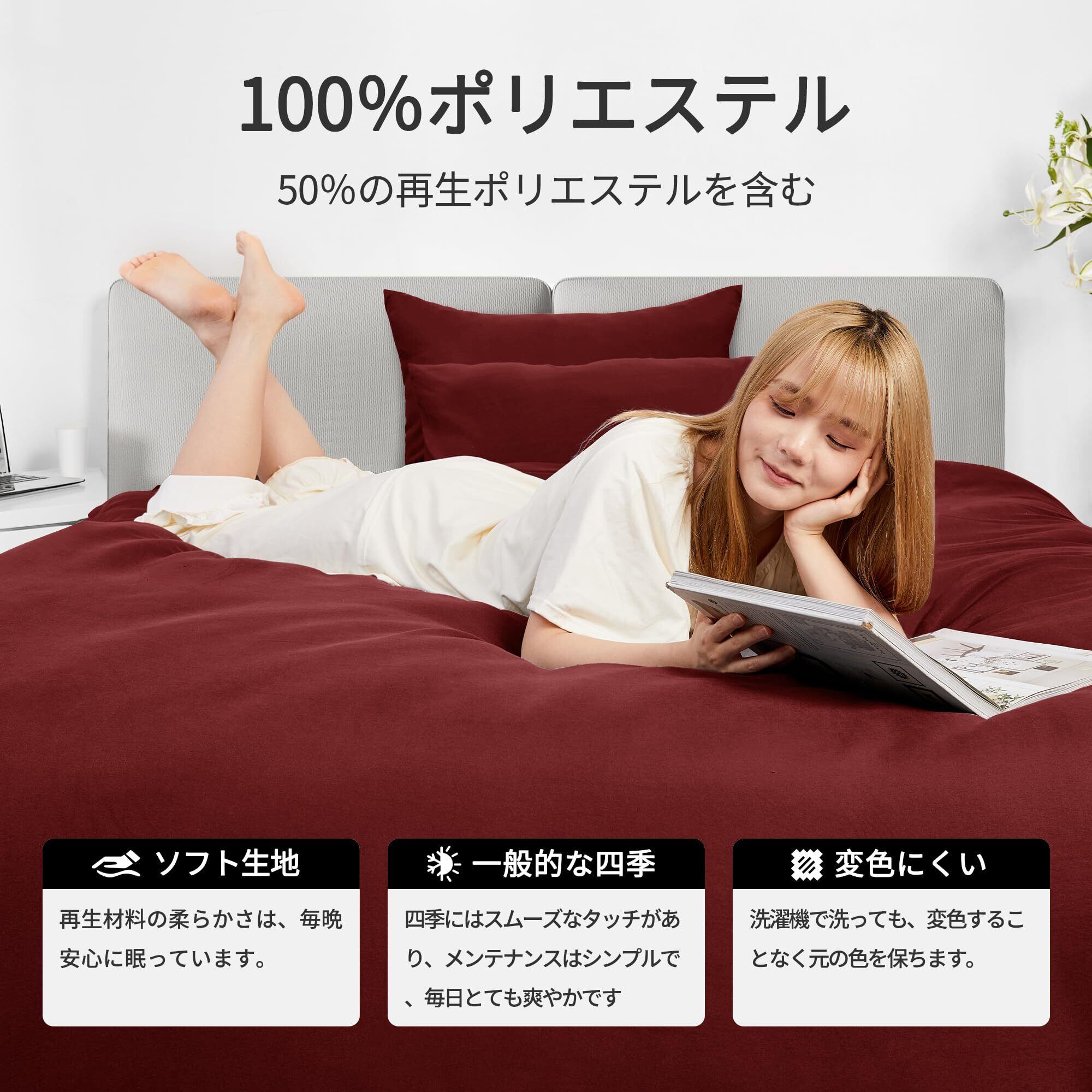【GRS及びエコテックスの認証を取得する】持続可能な認証:GRS及びエコテックスの認証を取得した製品は、お客様と環境に安全な環境に優しい素材を使用しています。持続可能なライフスタイルに貢献するだけでなく、あなたとあなたの家族の健康のために安全であるだけでなく、環境に優しい製品を選択します。布団カバーと枕カバー、シーツの色柄に統一感を持たせると、よりまとまりのある寝室空間を演出できます。ホワイト、ダークグレー、ライトグレーなど豊富なカラーバリエ-ションにより、季節ごとに組み合わせを変えることでオールシーズンお部屋を鮮やかに彩ってくれます。家庭での丸洗いでも手洗いでも洗濯可能で、いつでも清潔感を保ています。素材によって、洗濯のしかたやお手入れの方法も異なります。ポリエステル素材は洗濯しても乾きやすいため、雨が続く季節に重宝するです。洗濯時に若干色落ち、色移りする場合がございますのでご注意ください。