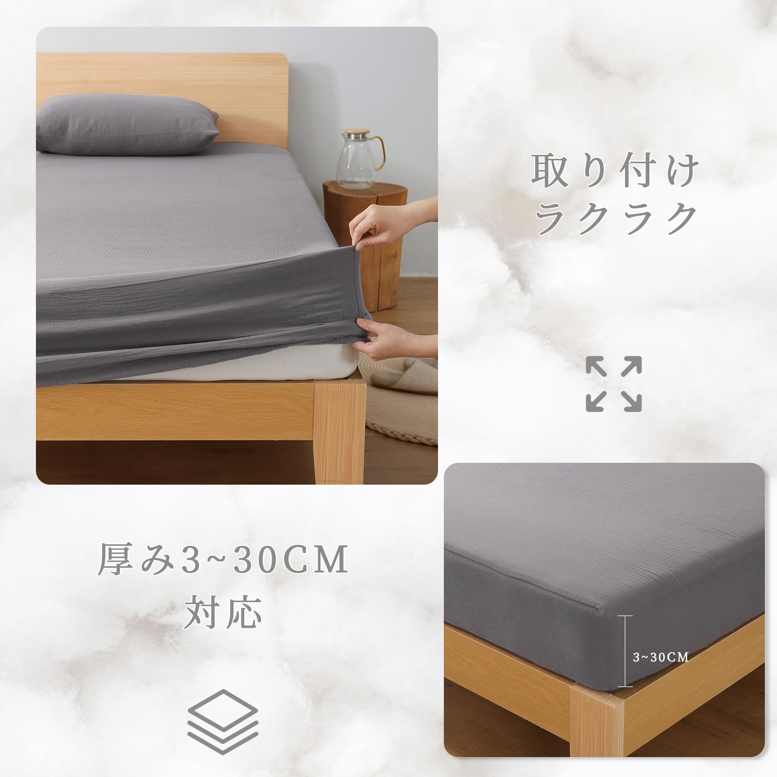【簡単装着でストレスフリー】シーツ裏に全周ズレ防止ゴムを配備し、簡単に着脱可能です。マットレスの角をしっかりと包み込み、洋式ベッドマットレスだけでなく、和式の敷き布団にも完璧にフィットします。繰り返しの寝返りにもずれる心配がなく、快適な使用感を提供します。一人暮らしの女性やお手入れが面倒な方にもおすすめです。