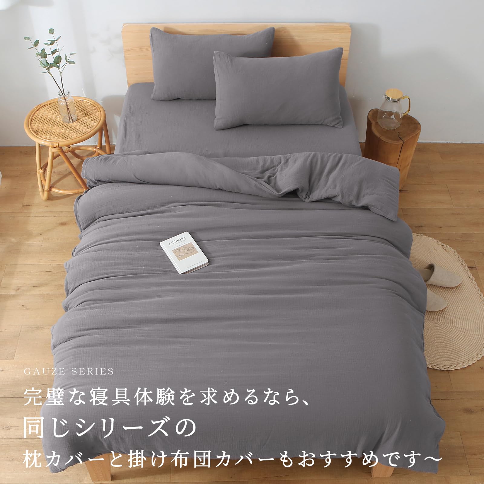 【特価商品】SE ボックスシーツ ダブル 綿100% ガーゼ ベッドシーツ マットレス/ベッド/敷き布団カバー 柔らかい 吸湿通気 抗菌·防ダニ 全周ゴム付き ずれない 洗える オールシーズン (140X200cm・グレー) 「SE Softexly」 | asaRulu0511
