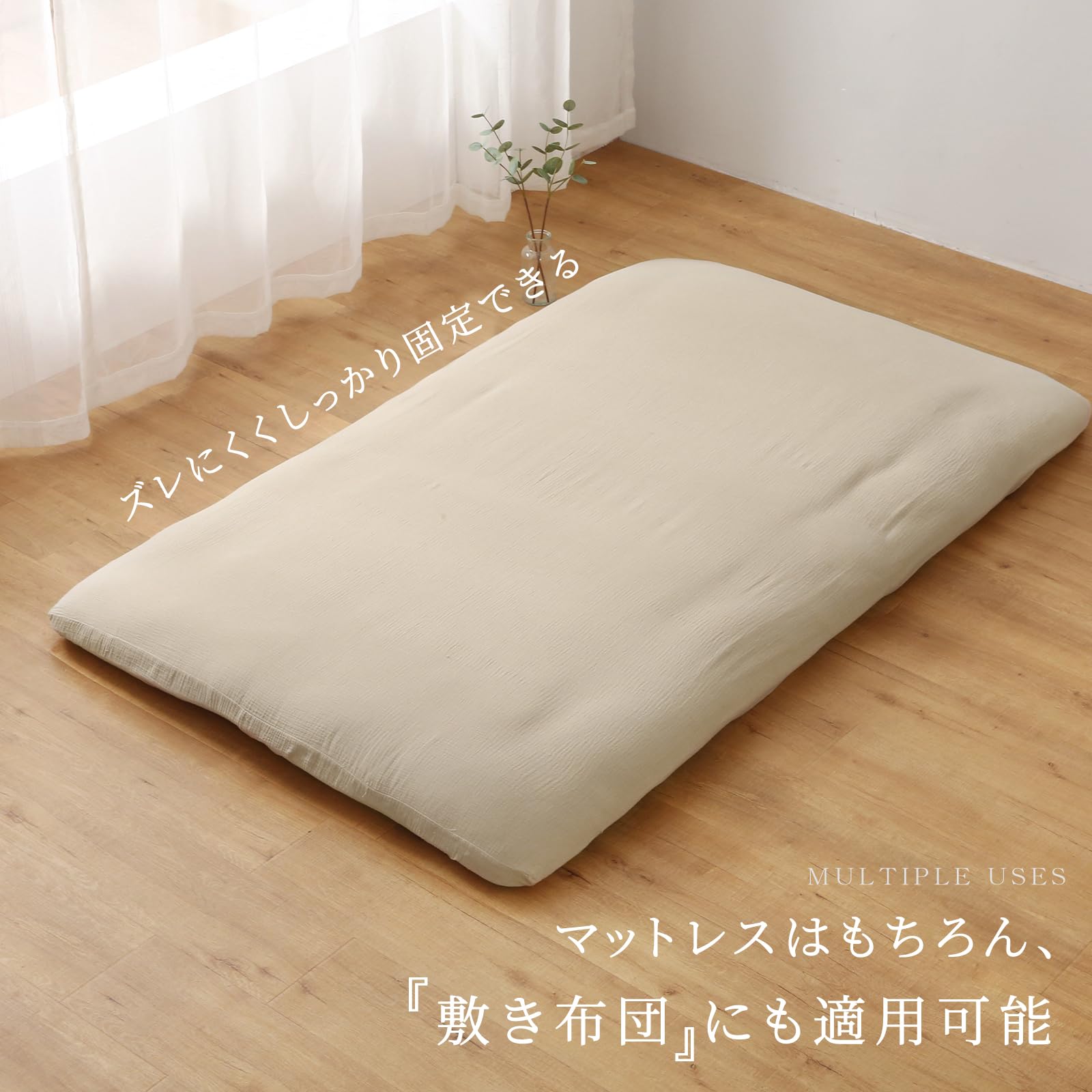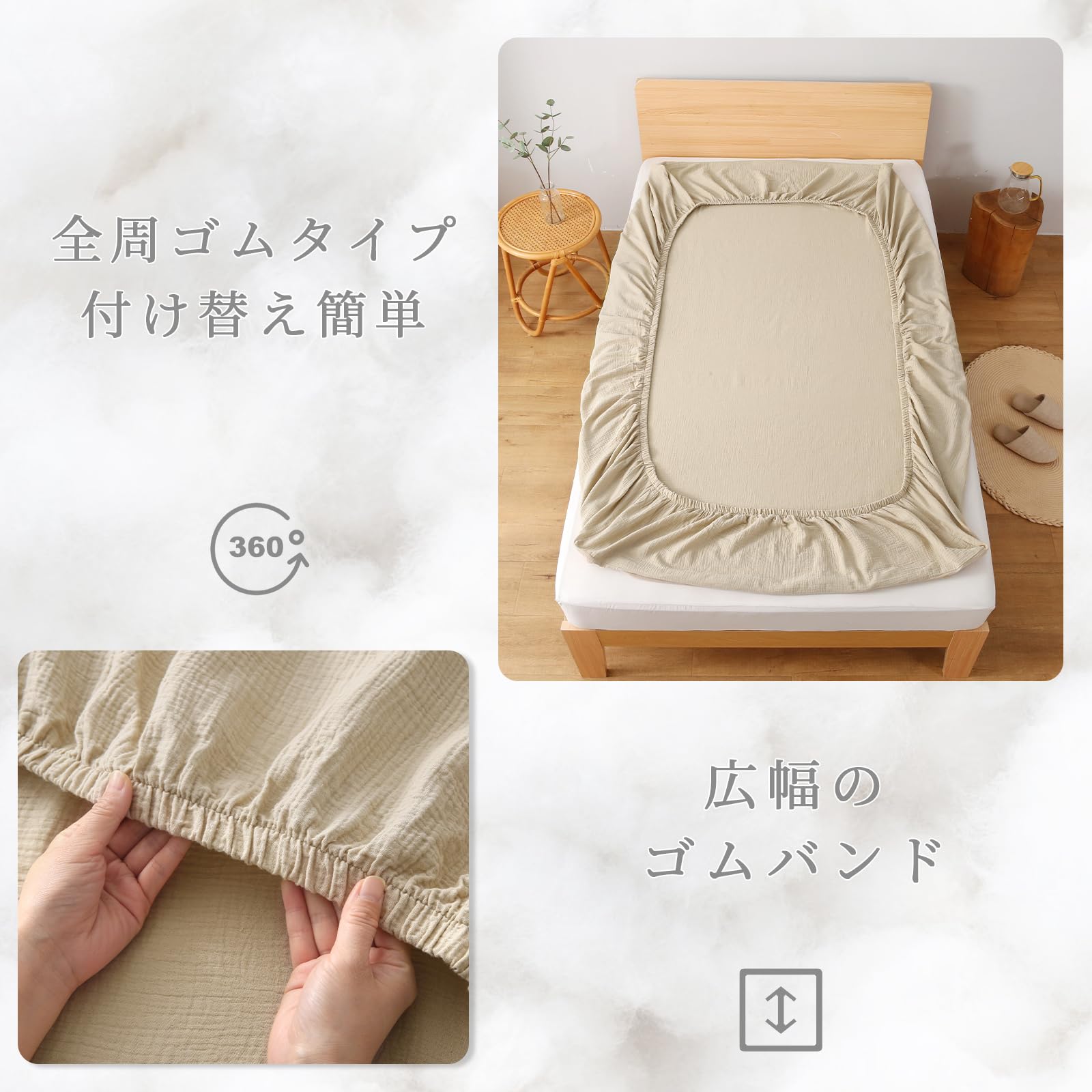【簡単装着でストレスフリー】シーツ裏に全周ズレ防止ゴムを配備し、簡単に着脱可能です。マットレスの角をしっかりと包み込み、洋式ベッドマットレスだけでなく、和式の敷き布団にも完璧にフィットします。繰り返しの寝返りにもずれる心配がなく、快適な使用感を提供します。一人暮らしの女性やお手入れが面倒な方にもおすすめです。