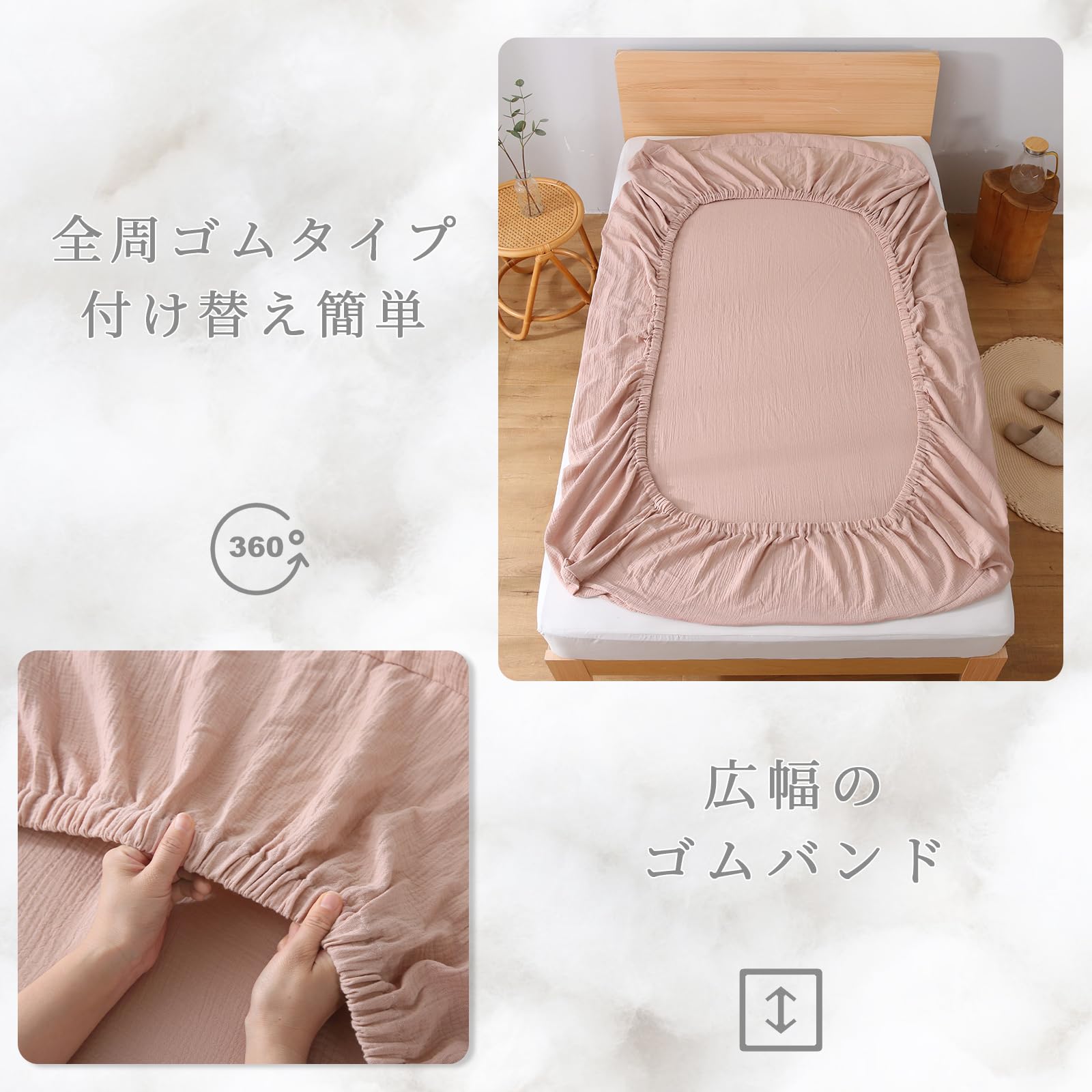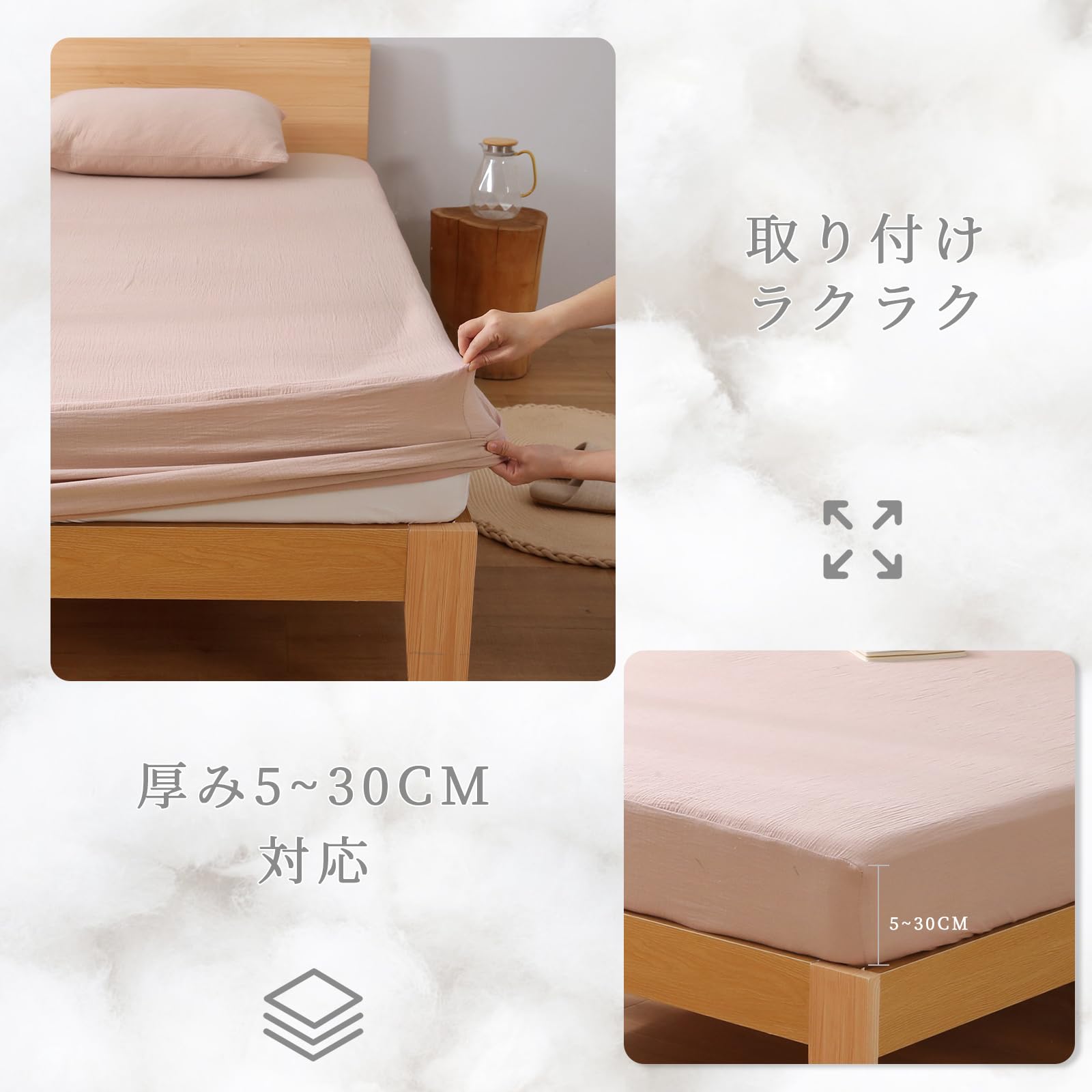 【簡単装着でストレスフリー】シーツ裏に全周ズレ防止ゴムを配備し、簡単に着脱可能です。マットレスの角をしっかりと包み込み、洋式ベッドマットレスだけでなく、和式の敷き布団にも完璧にフィットします。繰り返しの寝返りにもずれる心配がなく、快適な使用感を提供します。一人暮らしの女性やお手入れが面倒な方にもおすすめです。