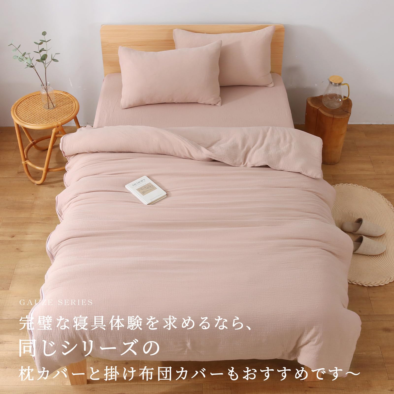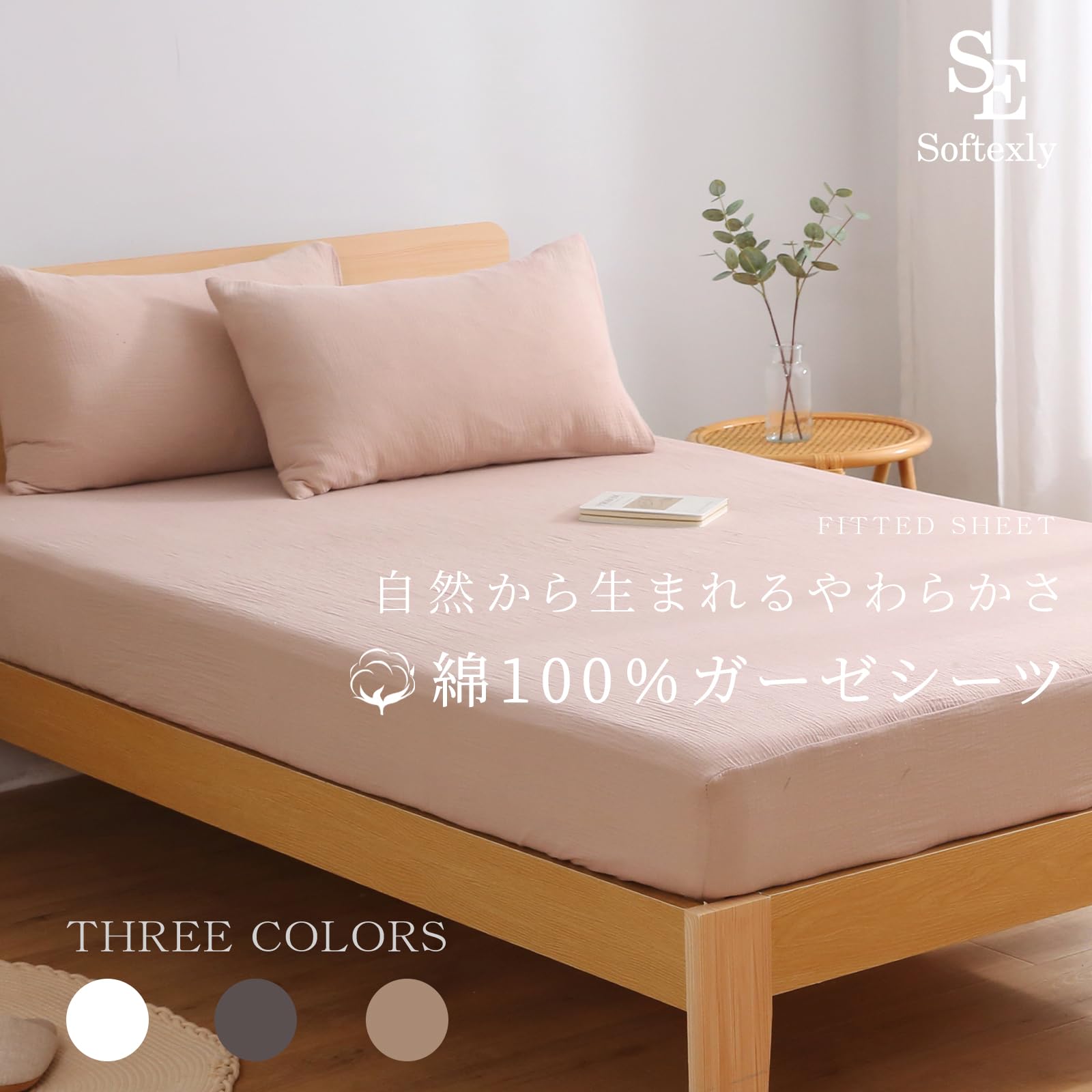SE ボックスシーツ ダブル 綿100% ガーゼ ベッドシーツ マットレス/ベッド/敷き布団カバー 柔らかい 吸湿通気 抗菌·防ダニ 全周ゴム付き ずれない 洗える オールシーズン (140X200cm・ピンク) 「SE Softexly」