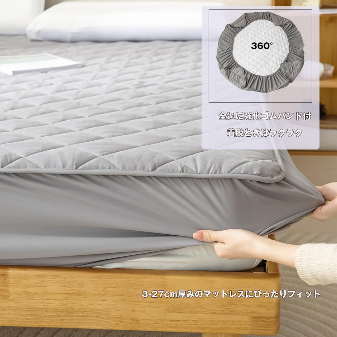 敷きパッド一体型ボックスシーツ クイーン 吸湿通気 柔らかい 中綿入り 全周ゴムバンド付 オールシーズン 抗菌防臭 マチ部分30cm 着脱簡単 ズレない 洗える 速乾 (グレー 160*200㎝)