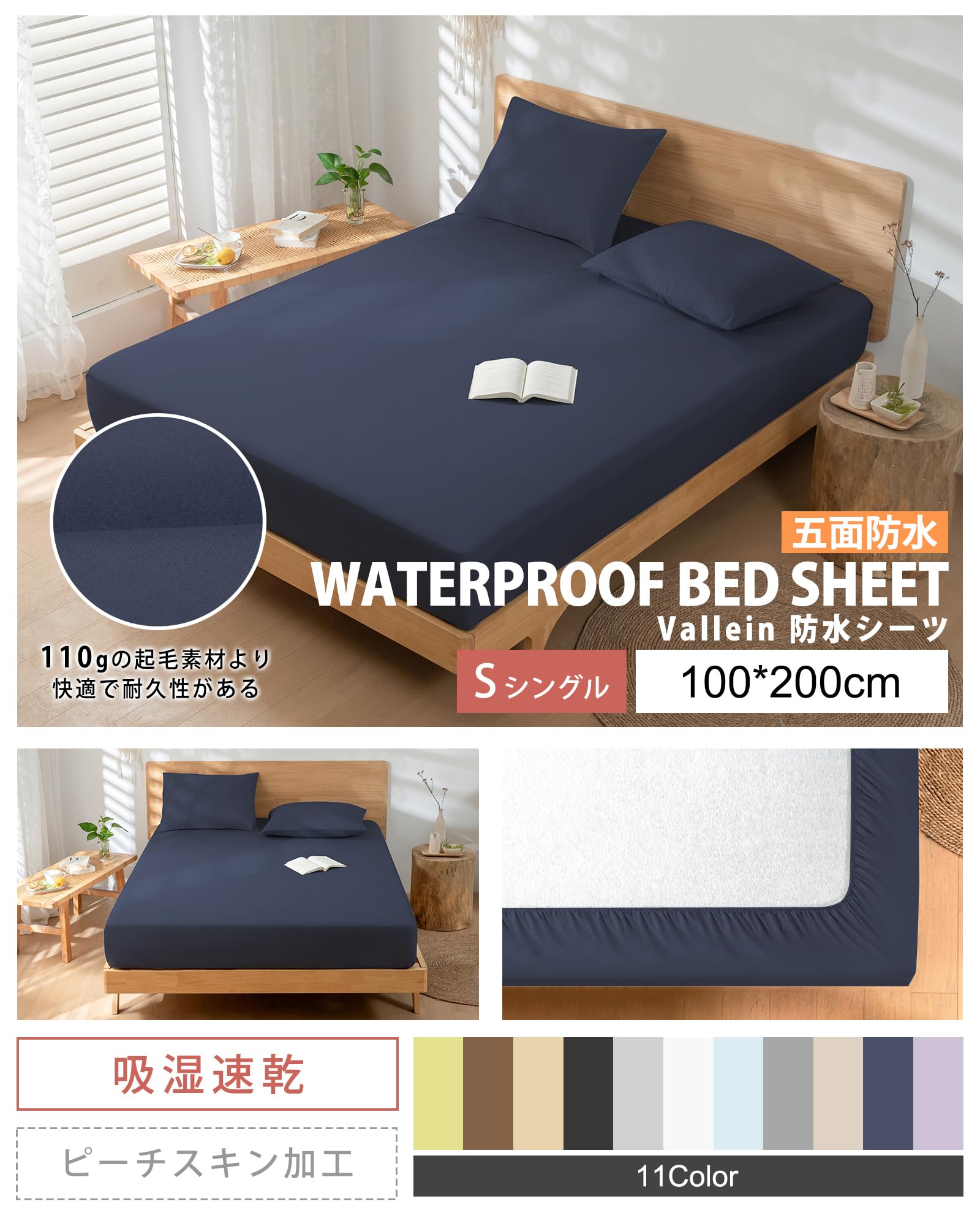 【新着商品】Vallein 防水シーツ 側面完全防水 シングル ボックス 全面防水 マットレスカバー おねしょシーツ ダブル セミダブル ボックスシーツ クイーン 防水 大人用 キング 赤ちゃん ベッドシーツ 介護用シーツ ベビー 保育園 介護用 ペット 防ダニ 丸洗い可能(シングル·ネイビー·100*200)