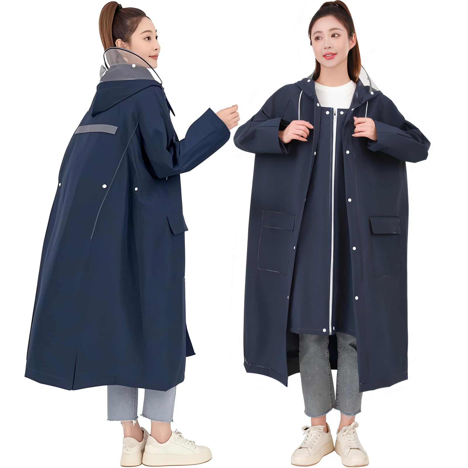 [高耐水EVA素材とダブル防水加工]このレインコートは、環境に優しいEVA素材を使用しており、防水性が高く、耐久性にも優れています。2500mmの耐水圧を持ち、三重撥水加工で雨水をしっかりと弾きます。前面はファスナーとボタンの二重構造になっており、完全に閉じることで水や風の侵入を防ぎます。急な雨にも対応できる便利なデザインです。