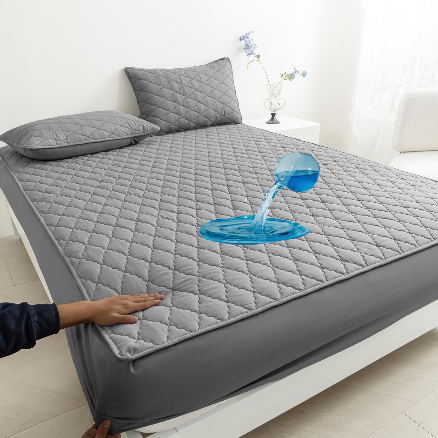 【在庫セール】防水 ボックスシーツ 吸湿性 薄型 敷きパッド 防水シーツ 防水タイプ ベッドシーツ 柔らかな触感 丸洗い可能 四季適用 (グレー シングル・100×200cm)