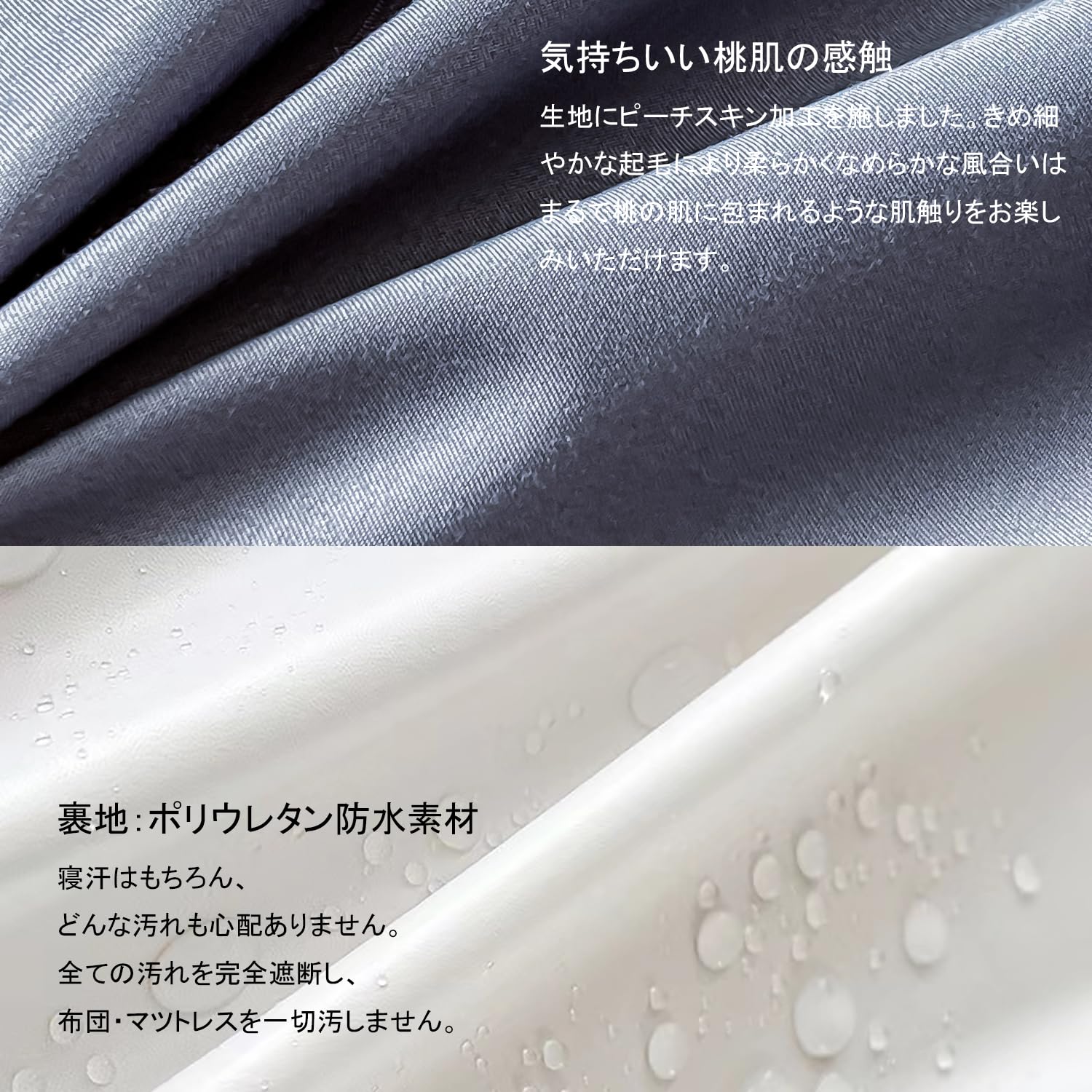 【特徴】■完全防水!寝汗はもちろん、どんな汚れも心配ありません。全ての汚れを完全遮断し、布団・マツトレスを一切汚しません。■側面も防水加工済、 横に流れても安心です。■呼吸をする防水素材。透湿性防水素材の為、蒸れも冷えもありません。又、汚れは寝具に浸透せず、乾燦した状態を保つ事が出来る為、布団やマツトレスの劣化が遅ぐ、ニオイの発生や、カビ予防にもなります。