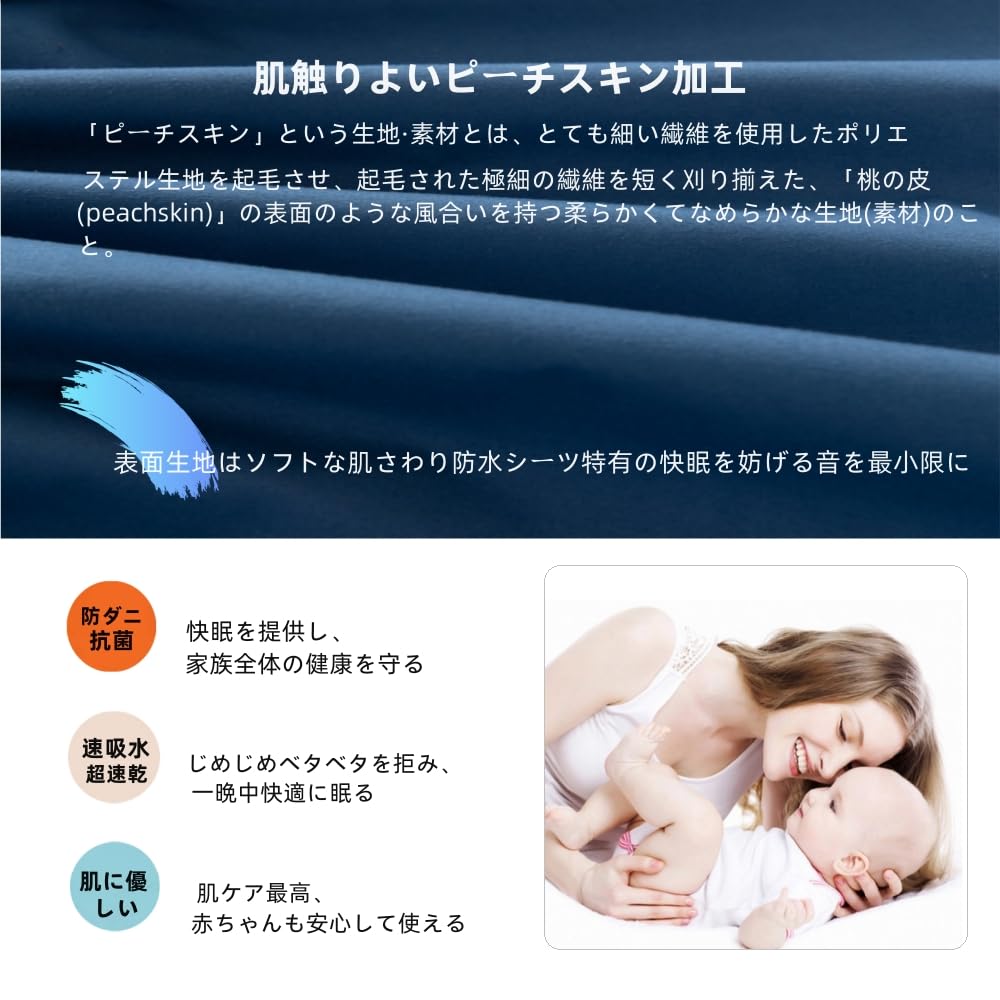 【吸水速乾・防ダニ・抗菌】:吸水速乾タイプのボックスシーツ、洗ってから短時間で乾燥します。ダニの栄養源となるフケ、アカ、湿気などをマットレスに溜まることはないのため、ダニの繁殖を抑制できる。また、日常使用には、おねしょや汚れが浸み込んで不衛生な状態になり、細菌増殖の可能性があります。この速乾シーツを使用すると、定期的に洗う可、清潔に使い続けることができ、雨の日でも安心して家族をしっかり守ります。