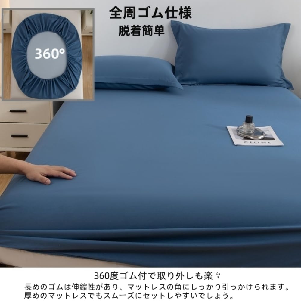 【ピーチスキン加工・しっかりとした高密度生地】:おもて面:柔らかい磨き再生繊維(100%ポリエステルです。)を採用、高密度織りの生地を厳選し、丁寧な作りで厚みのあるボックスシーツです。耐久性が高い、長くご使用いただけます。ピーチスキン加工で、すごく柔らかく、シワや毛玉もなりにくく、サラサラとした肌触りですごく心地よいです。毎日快適に眠れて、一年中お使いいただけます。