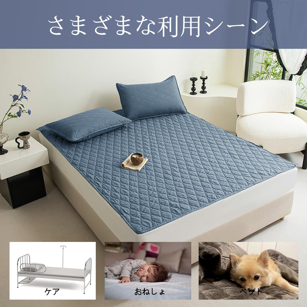 【在庫処分】防水 敷きパッド 防水シーツ 超薄型 洗濯機で洗えます マットレスパッド 介護 ベッドシーツ ベッドマット着替えも洗濯も簡単 敷きカバー 防水パット 寝汗対策 通気性 吸汗 速乾 毛玉なし 洗える 4隅ゴム付き オールシーズンで使える (ブルー セミダブル・120×200cm) | asaRulu0511