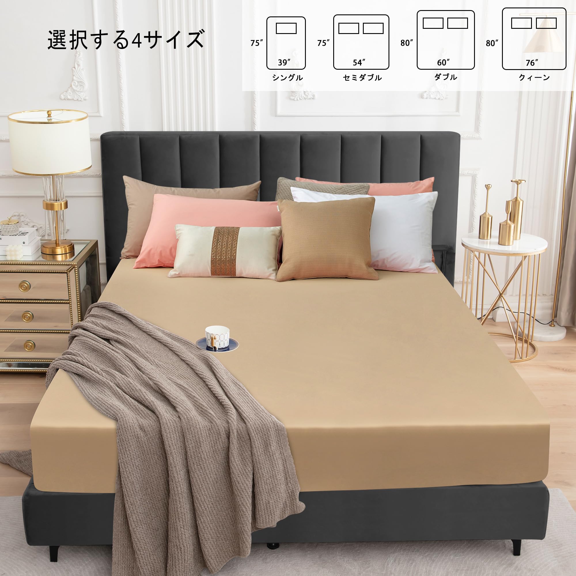 Sufdari 防水シーツ ボックスシーツ セミダブル 弾性輪ゴム付き防水 マットレスカバー ベッドカバー おねしょシーツ ベッドシーツ 柔らかな触感 毛玉なして使いやすいマットレスプロテクター 丸洗い可能 四季適用(キャメル、セミダブル・120X200cm)