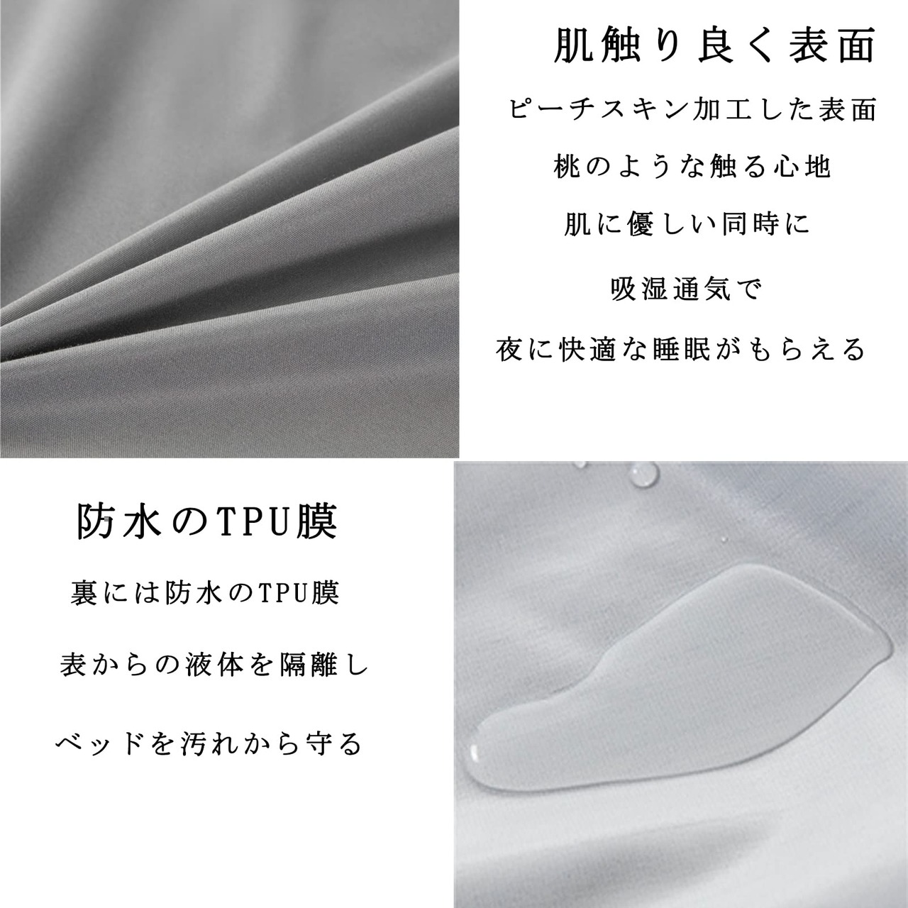 防水:表面の生地は柔らかくて素肌にやさしいです。裏地は防水・通気性優れたTPU素材を使用しており、ベッドを水分や汚れから守ります。吸湿性や通気性が優れる素材を採用し、汗をやさしく吸い取り、心地良い睡眠を提供しています。