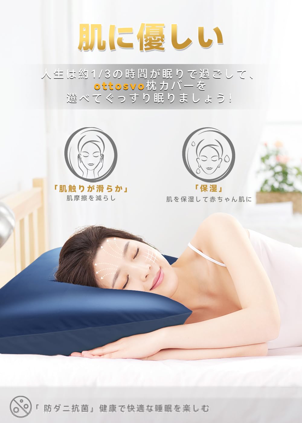 【2022最新】ottosvo 枕カバー 冷感 両面サテン 22匁 封筒式枕カバー 洗える サテンまくらカバー 良い通気性 うるつや髪 美髪 肌に優しい 摩擦軽減 防ダニ 抗菌防臭 サラサラ 冷感 四季適応 贈り物 プレゼント最適 ピローケース 1枚セット(43x63cm ネイビー) | asaRulu0511