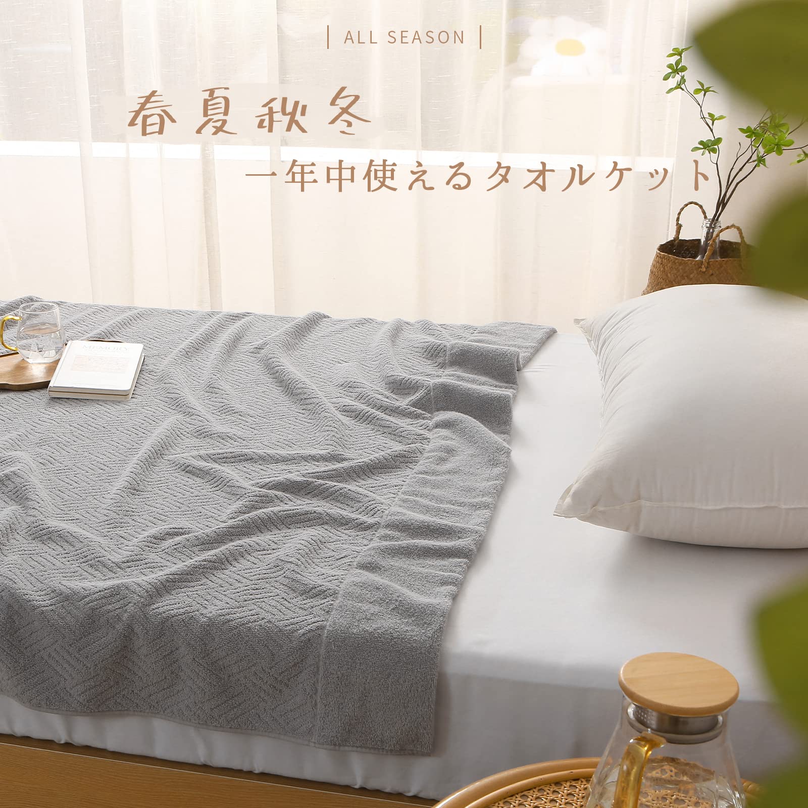 【在庫セール】SE タオルケット ダブル 夏用 ブランケット 綿100% 柔らかい ふんわり 吸湿速乾 抗菌防臭 洗える オールシーズン 180cmx200cm グレー 「SE Softexly」 | asaRulu0511