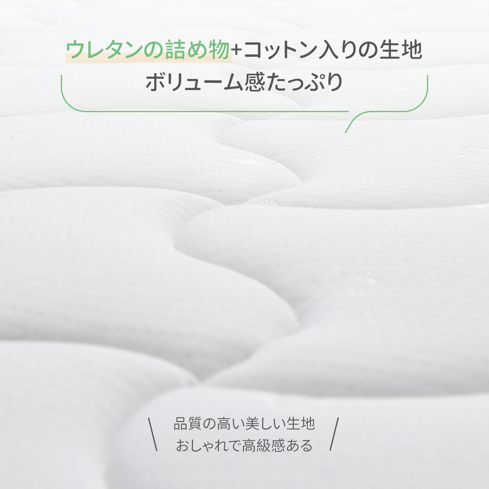 【通気性よい生地で快適】 ベッドマットレスは高級ニット生地を使用して、肌触り良くて伸縮性が高いです。柔らかく快適で寝返りを減少することはシワができにくくなります。さらに良好な吸湿性と通気性があるという特徴があり、夏場でも蒸れにくく、寝汗や湿気がきちんと放出されました。暑苦しさを抑えられるので、快適な睡眠を保ちます。