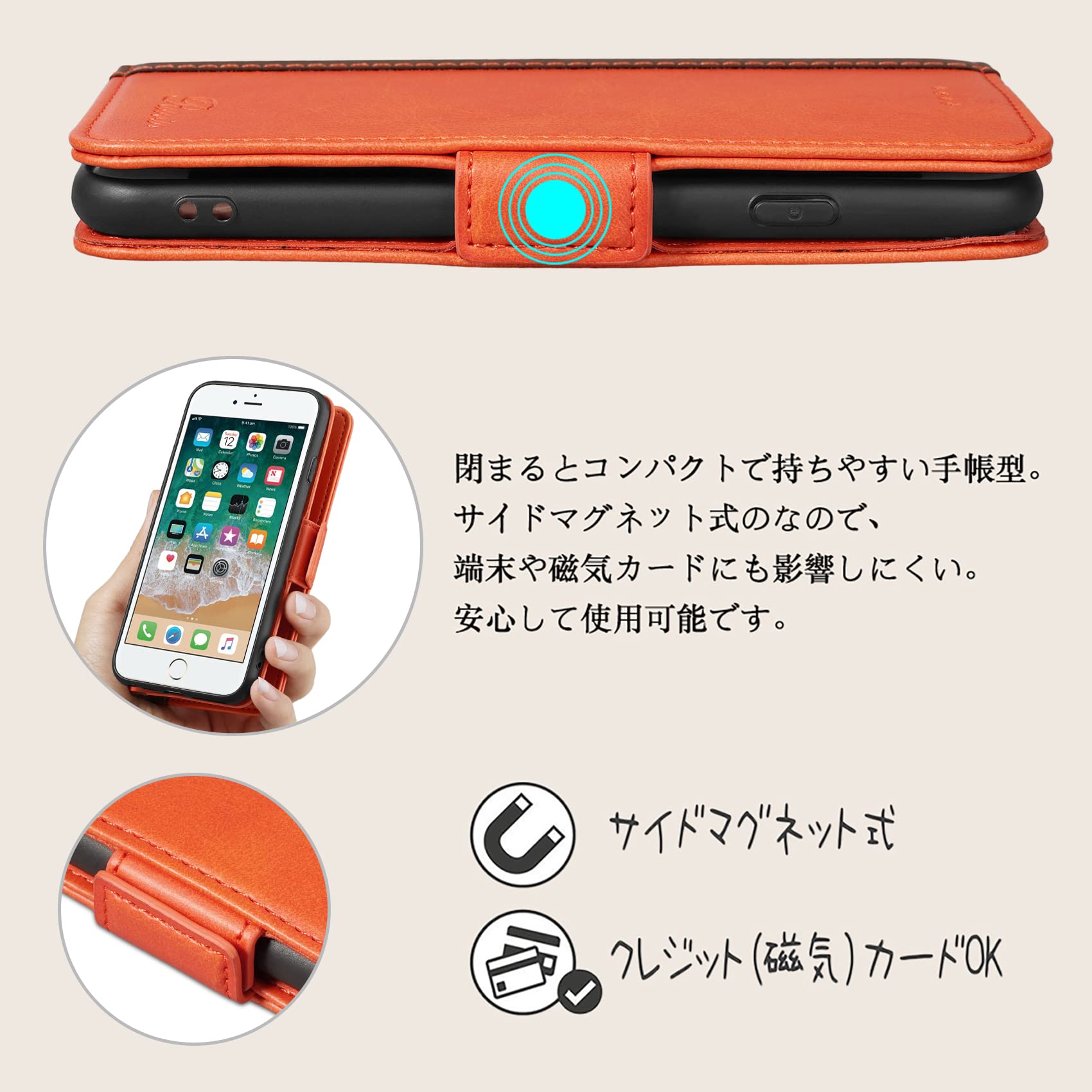 【新着商品】iPhone SE ケース 第2世代 iPhone se 第3世代 2022 ケース iPhone8 ケース 手帳型 iPhone7 手帳 Rssviss iPhone8 ケース iPhone7 カバー iPhone se 第2世代 手帳型ケース マグネット W3 iPhone se3 、iPhone se2、iPhone8、iPhone7対応 4.7inch オレンジ | asaRulu0511