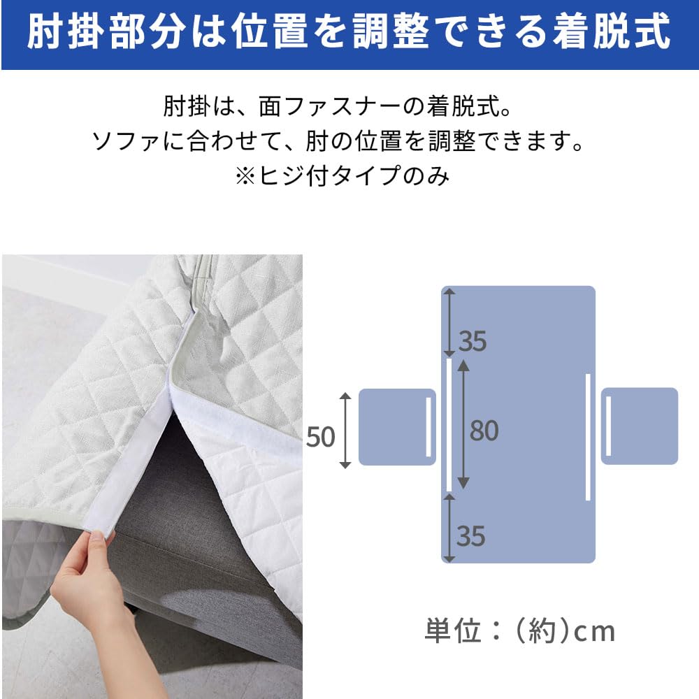 【使いやすい使用】肘部分は、面テープ仕様なので、背もたれの高さに合わせて一を調整することが可能です。