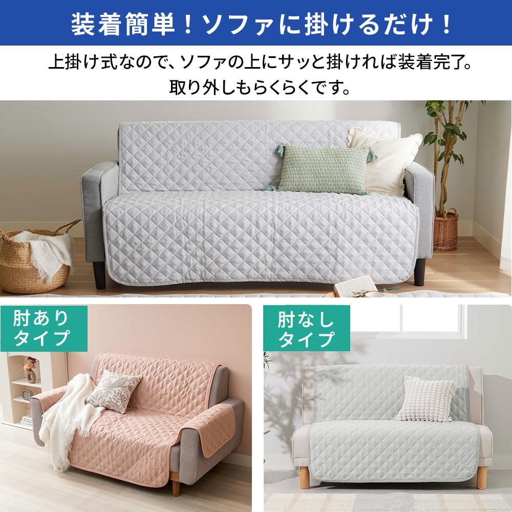 ベルーナ(BELLUNA) ソファーカバー 3人掛け 2人掛け 肘付き 肘なし はっ水 麻風 キルト かけるだけ 滑り止め付き 洗える さらさら オールシーズン(555530-103)