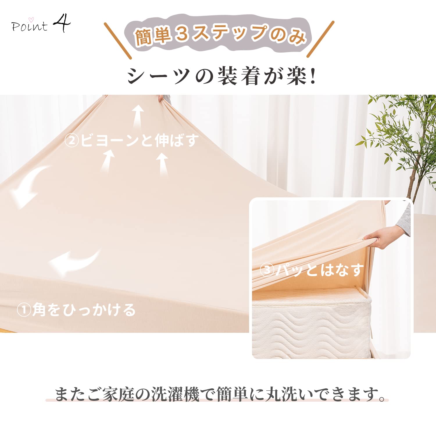 【速乾性&お手入れ簡単】ポリエステルの耐久性とポリウレタン繊維の弾力性により、丈夫でお手入れも簡単。耐久性があり、水洗いに強く、洗濯機で洗えるため、汚れが落ちやすく、いつでも清潔に保てます。シワになりにくく、縮みにくいので、洗ってもすぐに乾き、お手入れが楽です!オールシーズン快適に使えます。快適さ、肌触り、実用性を兼ね備えたこのベッドシーツは、より良い睡眠環境を求める方にぴったりの選択肢です。