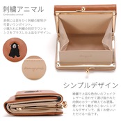 【ゆるくて不思議な動物の刺繍が可愛い】 表側には目をひく刺繍の動物が可愛いワンポイント。 小銭入れに刺繍の刻印でワンセンスをプラスした上品なデザイン。 綺麗で上品な色合いのフェイクレザーに合わせて選び抜かれた内側のカラーが映えてお洒落。 使いやすく飽きのこないシンプルなデザインで、長くお使いいただける一品です。
